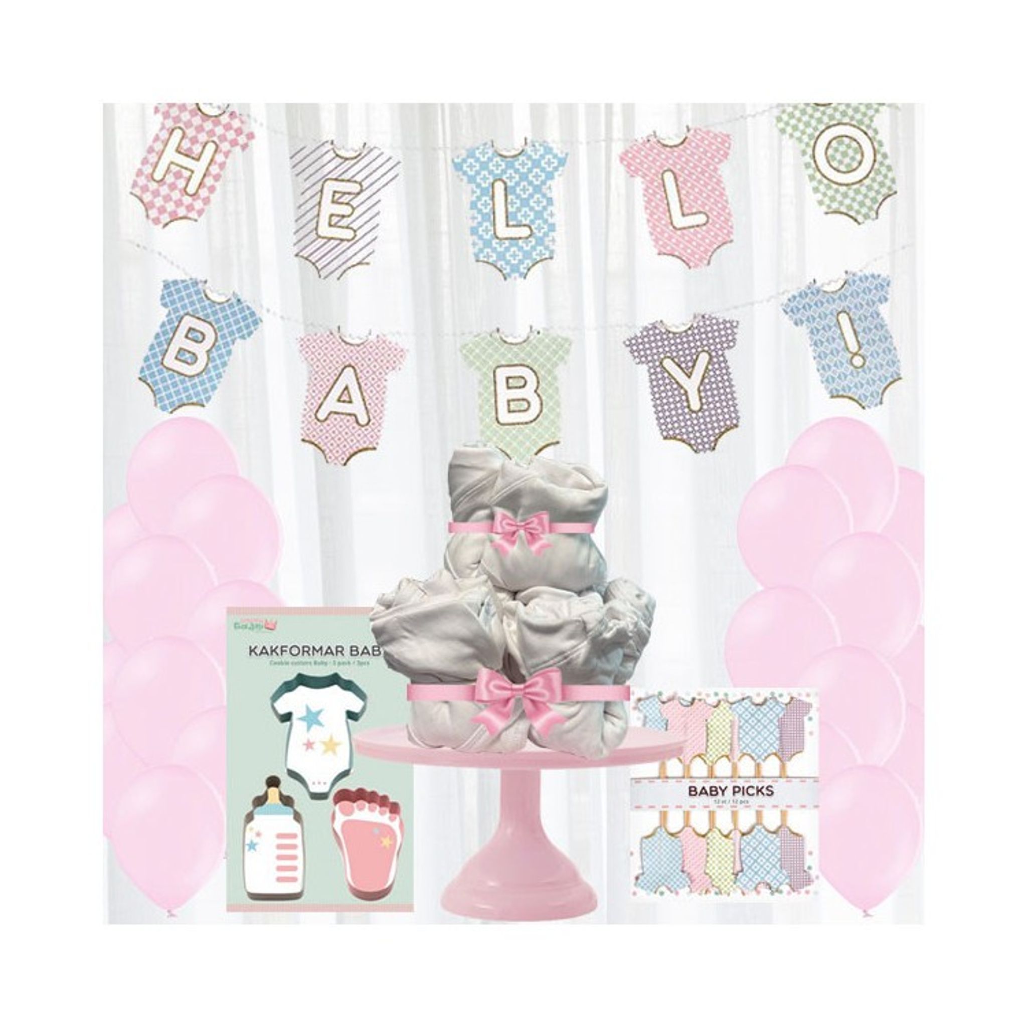 Färdigt kit med dekorationer till Babyshowern.