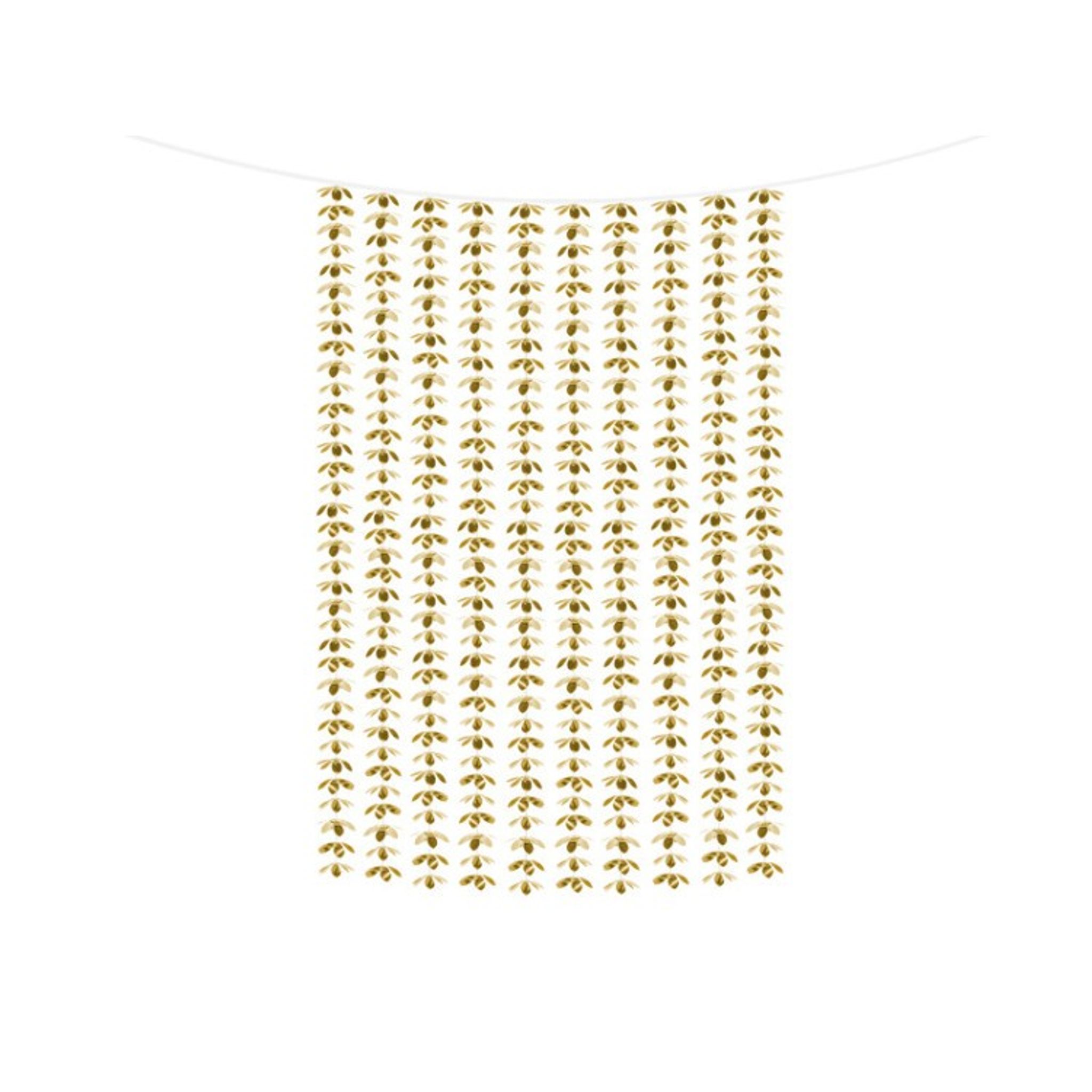 Backdrop eller draperi med blommor gjorda av guldfolie. En fantastisk dekoration på t.ex bröllopet och skapar en magisk dekor bakom brudparet eller vid bröllopstårtan.