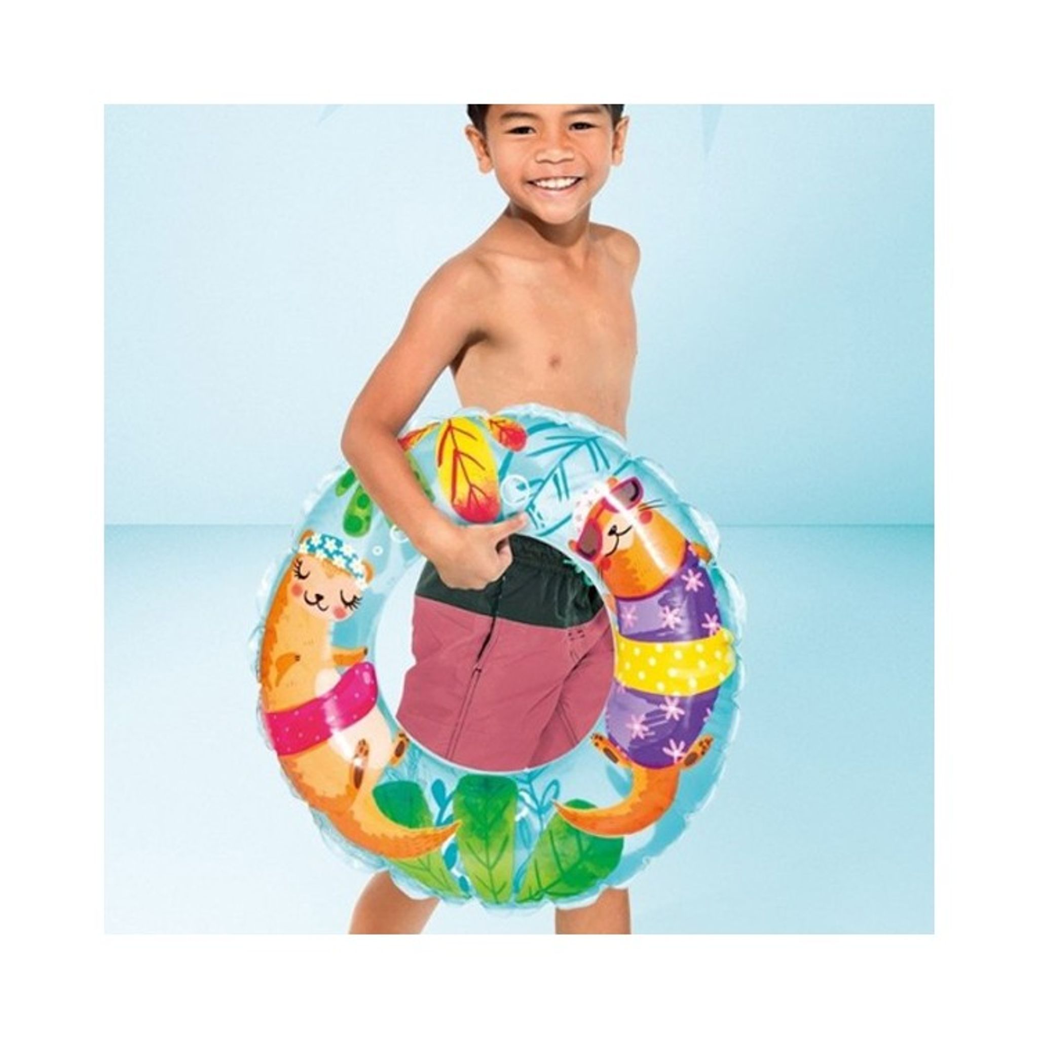 Ha kul och plaska runt i vattnet med badring från Intex. Den här simringen är en perfekt simring för barn som håller på att lära sig simma. Det blir roligare att lära sig simma med en badring som har skojigt och färgglatt motiv.