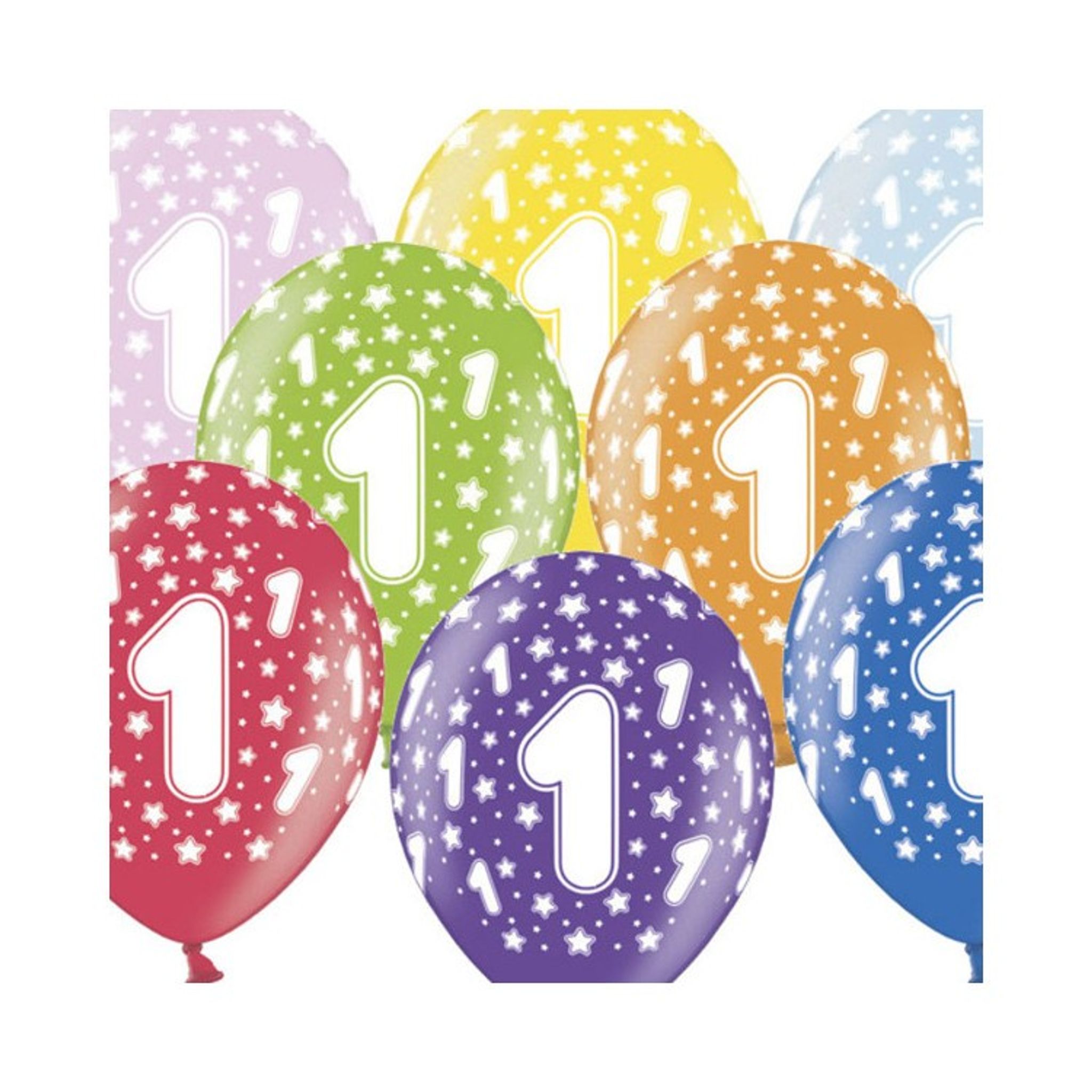 6 st ballonger med siffran 1. Perfekt att blåsa upp och dekorera med på 1-års kalaset. Storleken på ballongerna blir ca 30,4 cm när de är uppblåsta.