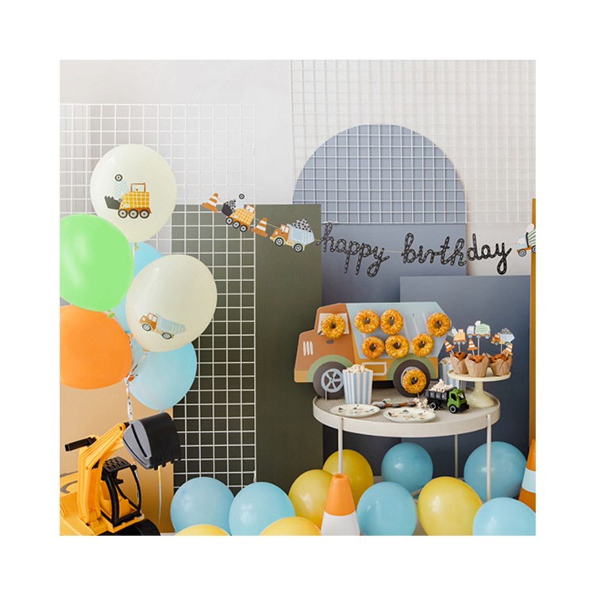 Färgglada ballonger med tryck av byggfordon. Ballongerna säljes i 6-pack med 2 st ljusblå, 1 grön, 1 orange och 2 vita med tryck av byggfordon. Storlek: ca 30 cm. Matcha gärna med övriga produkter i samma serie.