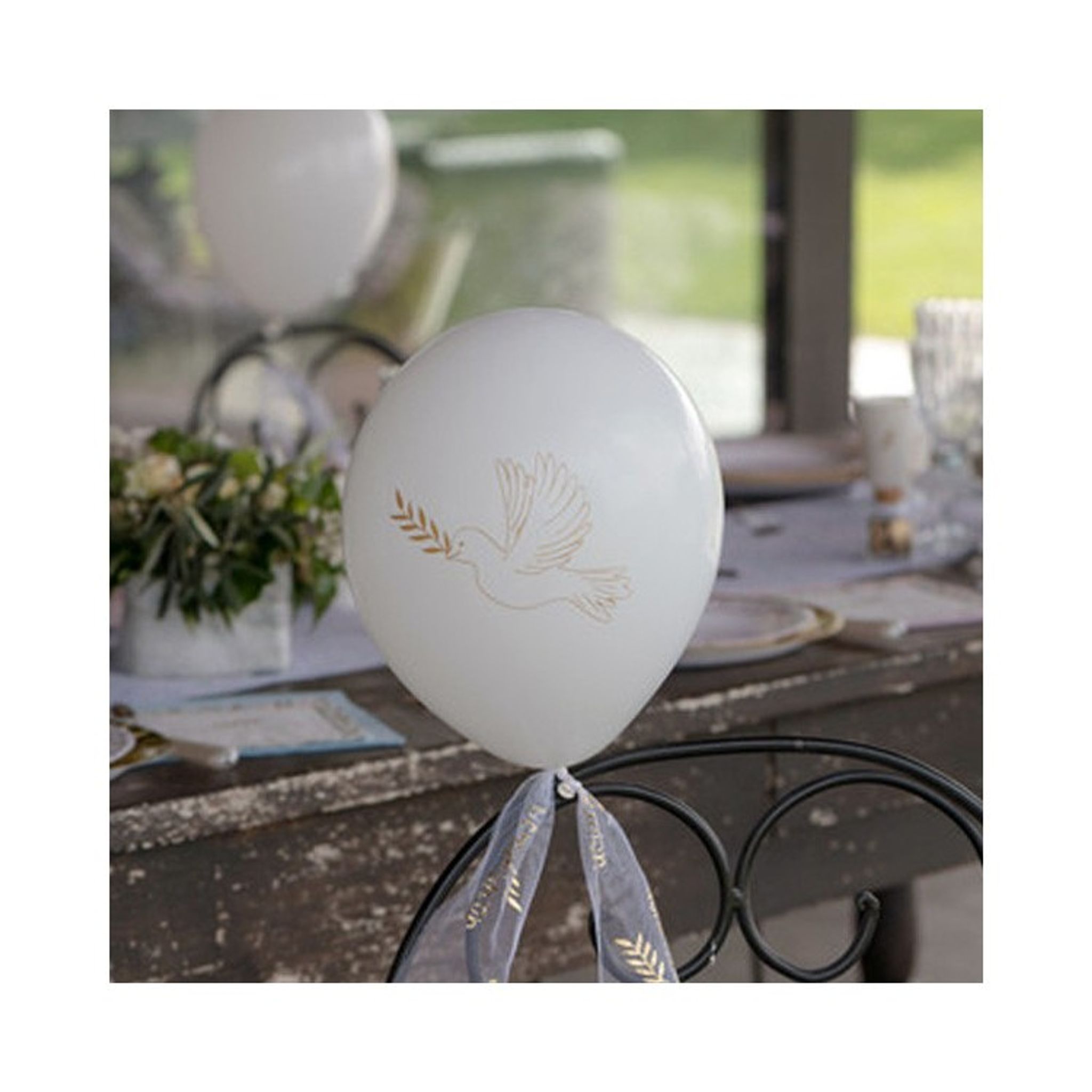 Vita ballonger med duva.