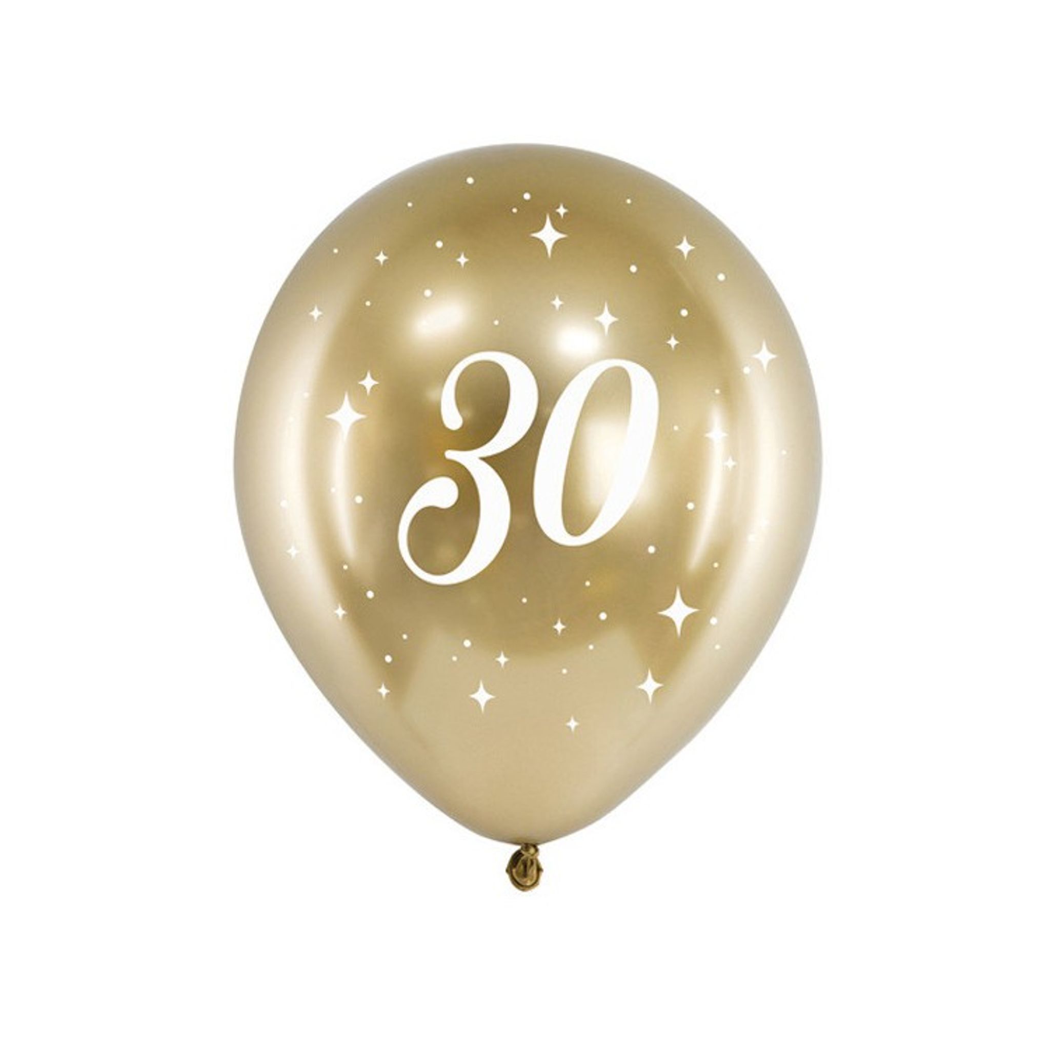 Ballonger med siffran 30 i guld. En förpackning innehåller 6 st ballonger.