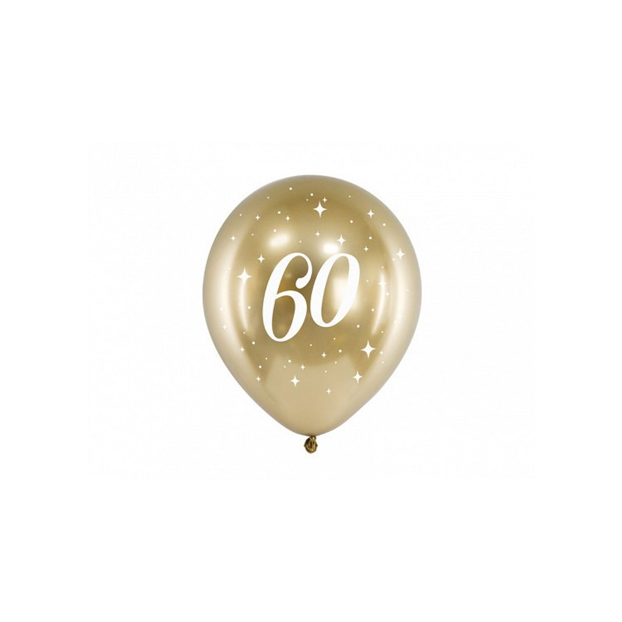 Ballonger med siffran 60 i guld. En förpackning innehåller 6 st ballonger.