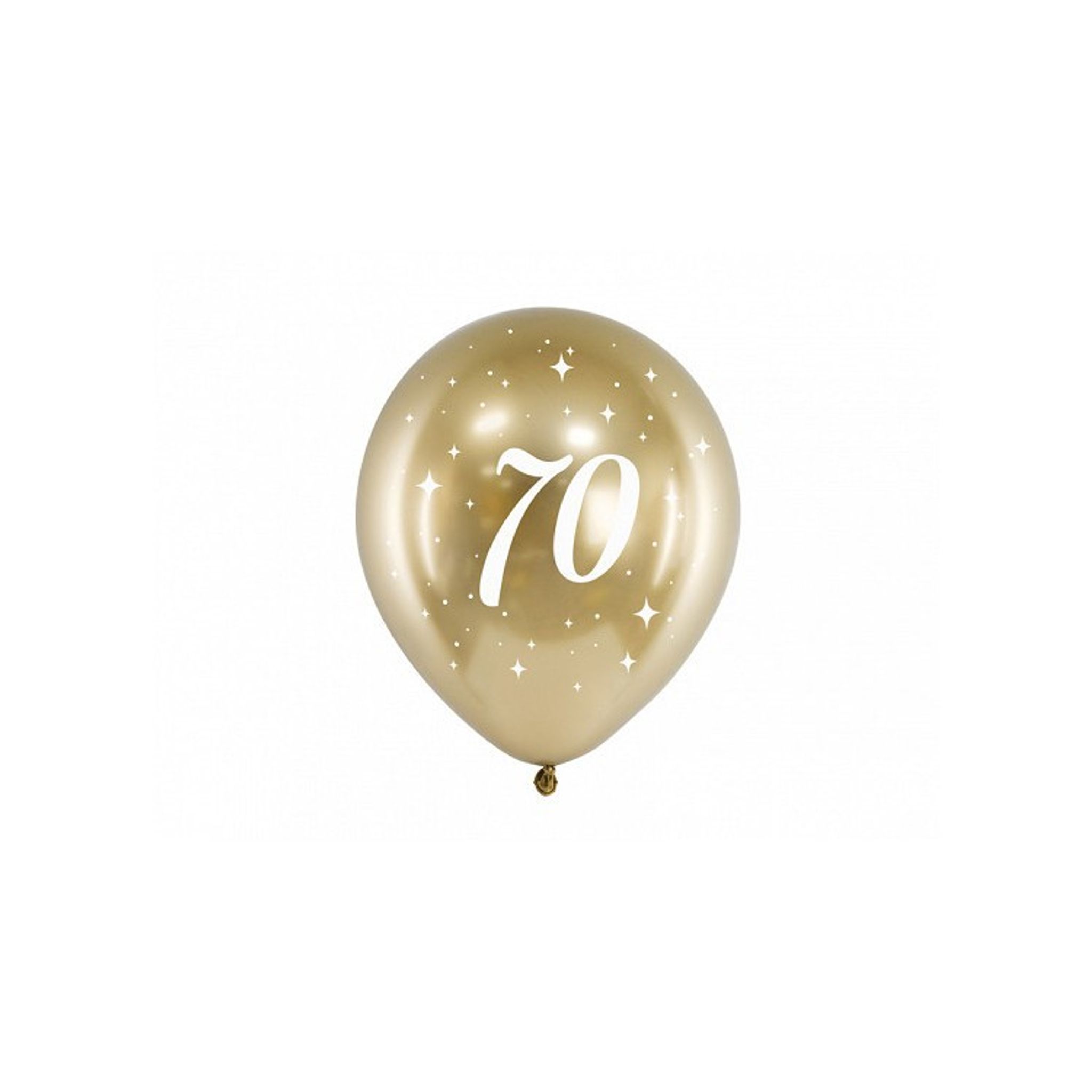 Ballonger med siffran 70 i guld. En förpackning innehåller 6 st ballonger.