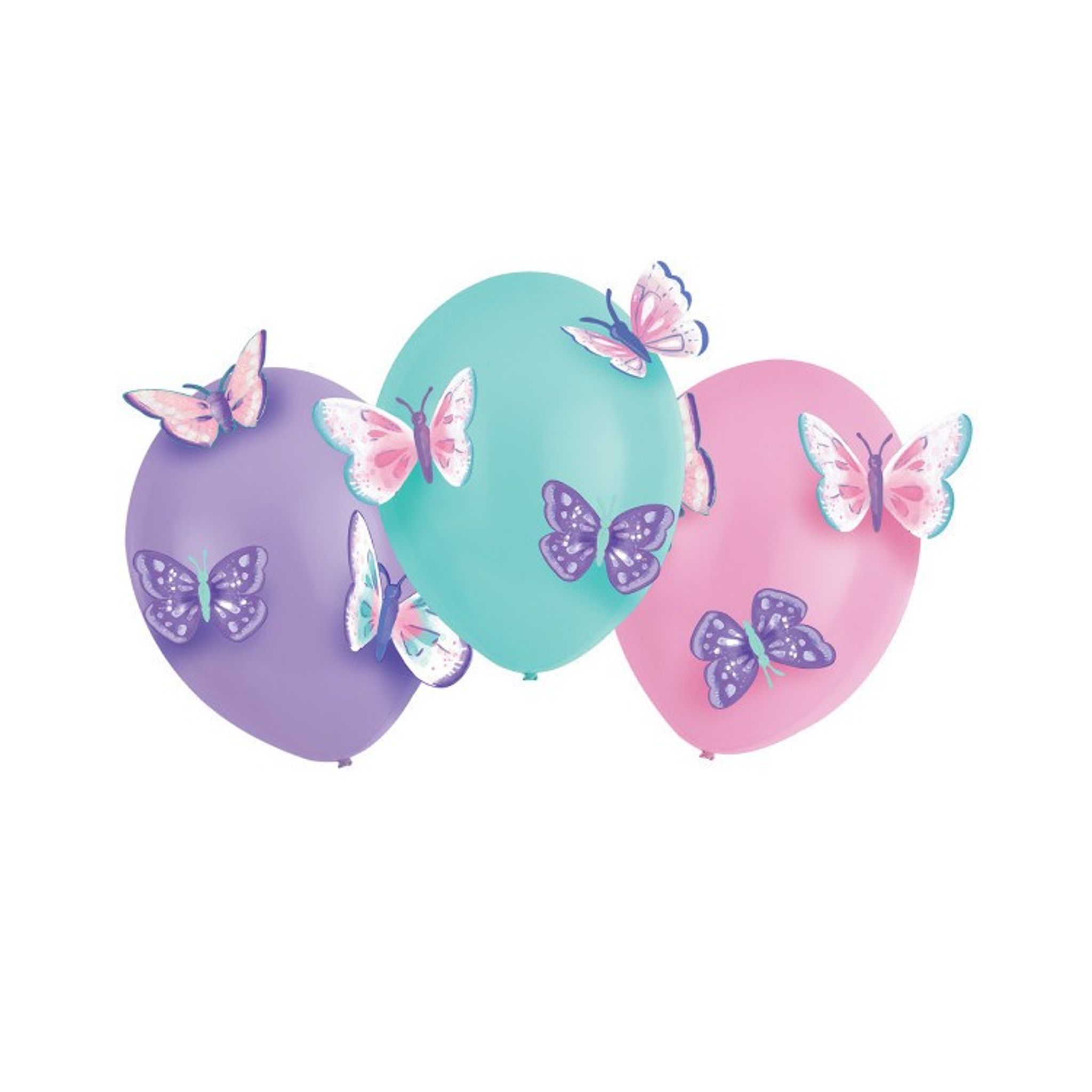Det här 3-packet med ballonger med tillhörande fjärilar passar utmärkt till barnkalaset för flickan eller pojken som är tokig i fjärilar. De passar också på sommarkalaset, prinsesskalaset och många andra teman. Fjärilarna fäster du på ballongerna vilket ger en 3D-effekt. Ballongerna och fjärilarna är i turkose, lila och ljusrosa. Otroligt fina att dekorera med på kalaset!