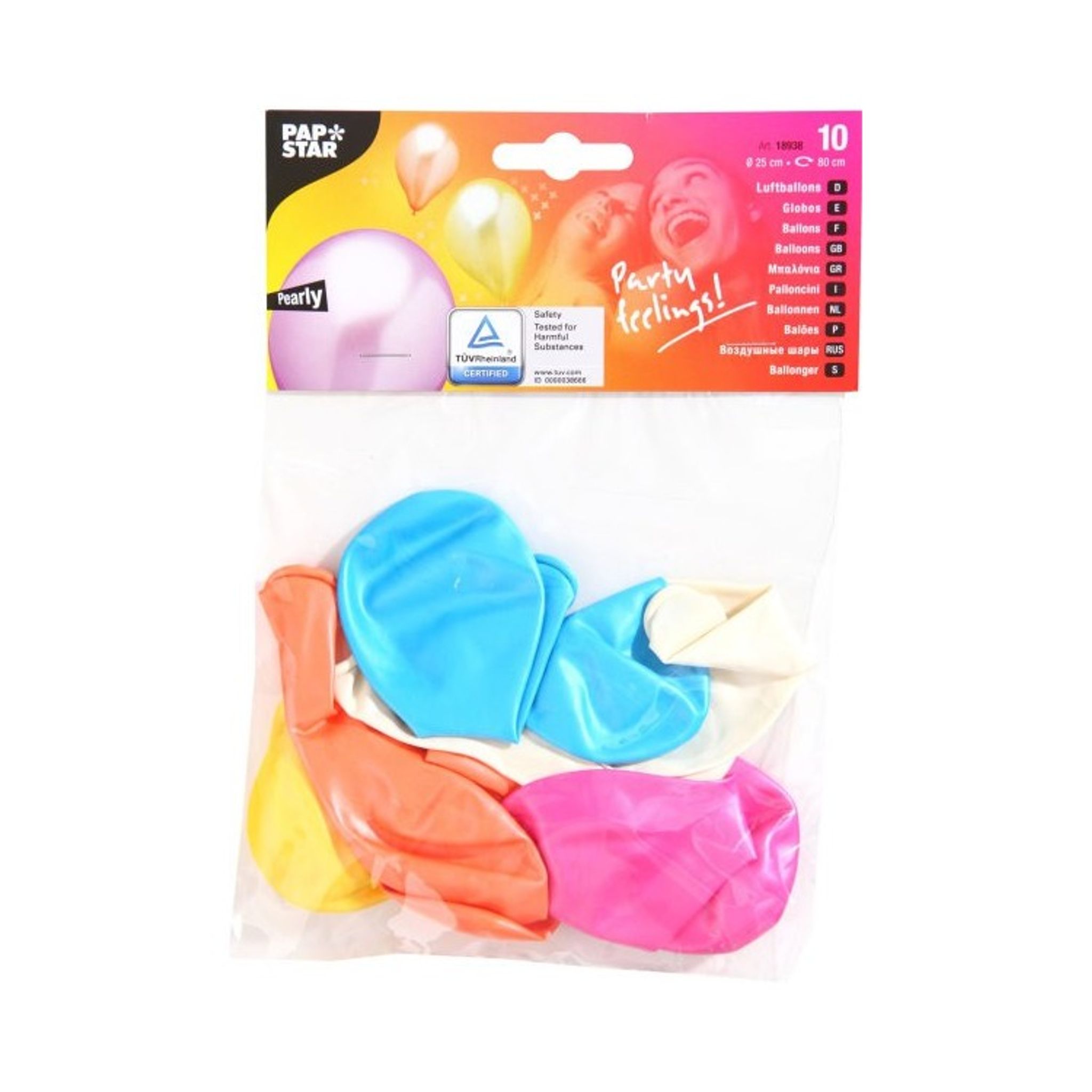 10 st ballonger i vackra pärlemor färger. I denna mix finner du färgerna gul, vit, rosa, blå och aprikos, alla i pärlemor finish. Dekorera kalaset med dessa ballonger och få en väldigt fin och vacker dekoration- en väldigt populär ballongmix till dop och babyshower.