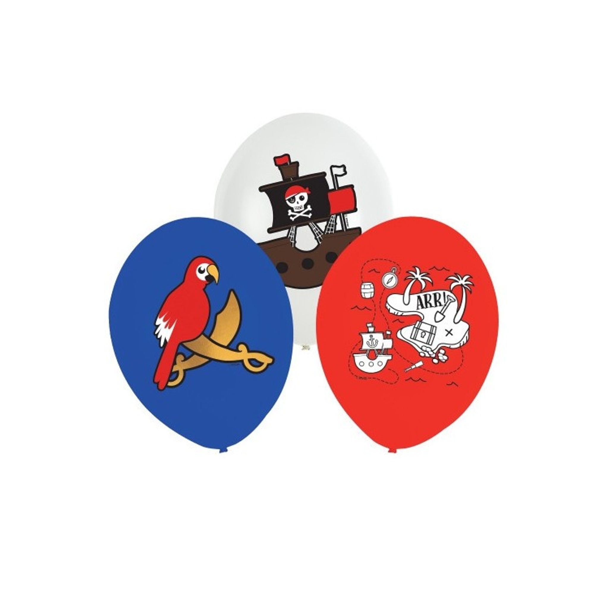 Snygga ballonger i rött, vitt och blått med Piratmotiv i färg. Perfekt att blåsa upp och använda som dekoration på just piratkalaset.