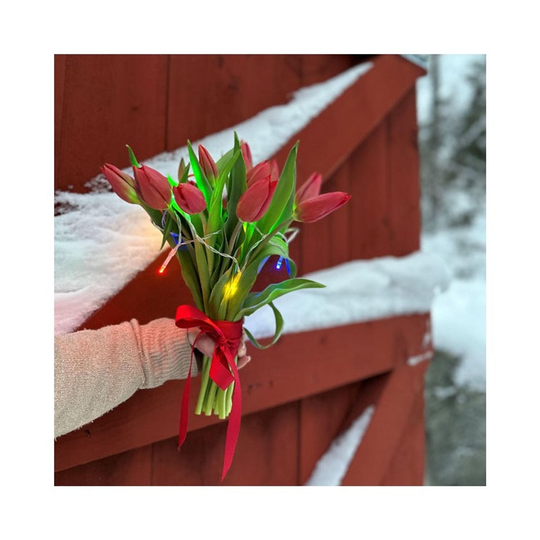 Belysningsslinga med färgade små minilampor. Kräver 2 st AA batterier som ej ingår. 1 meter lång