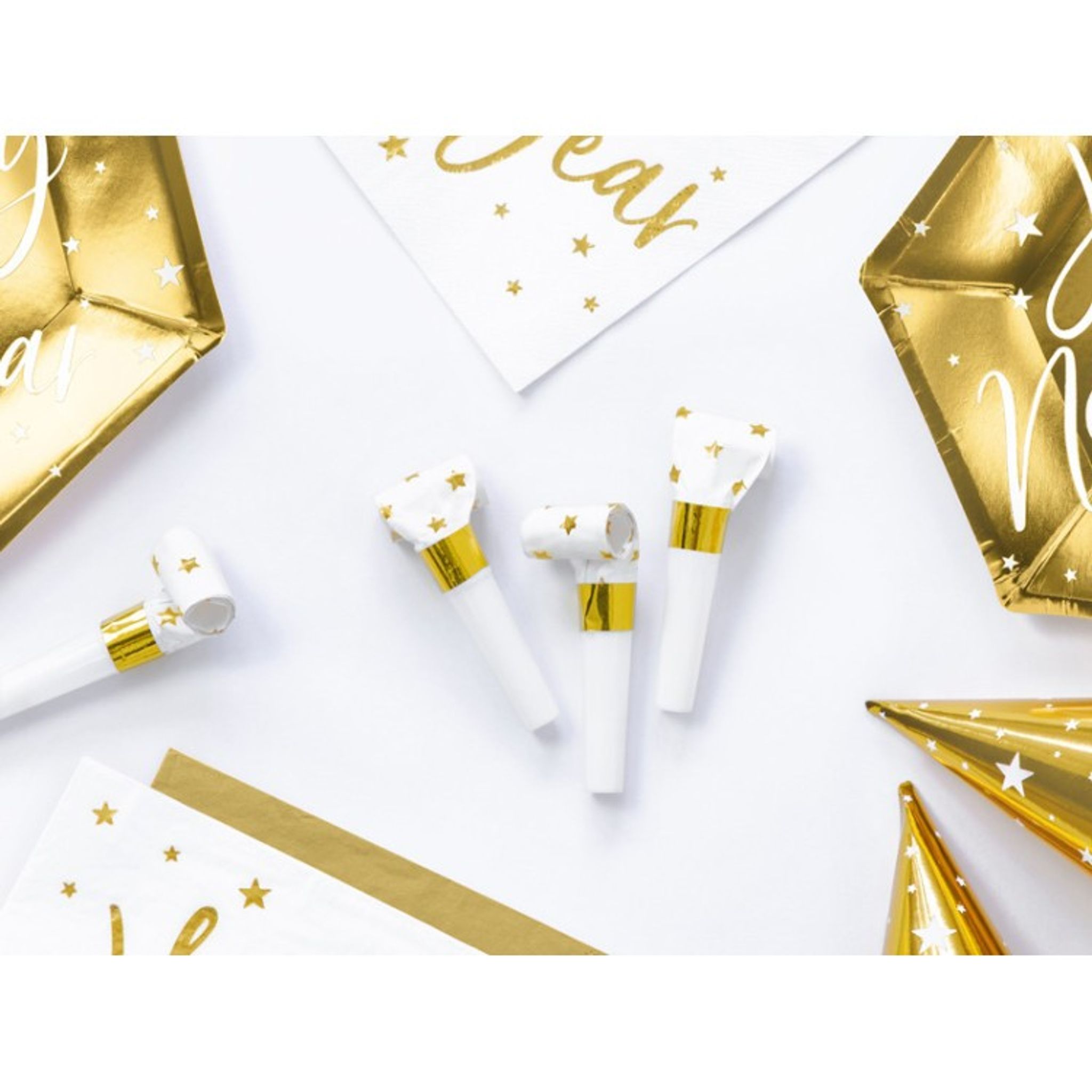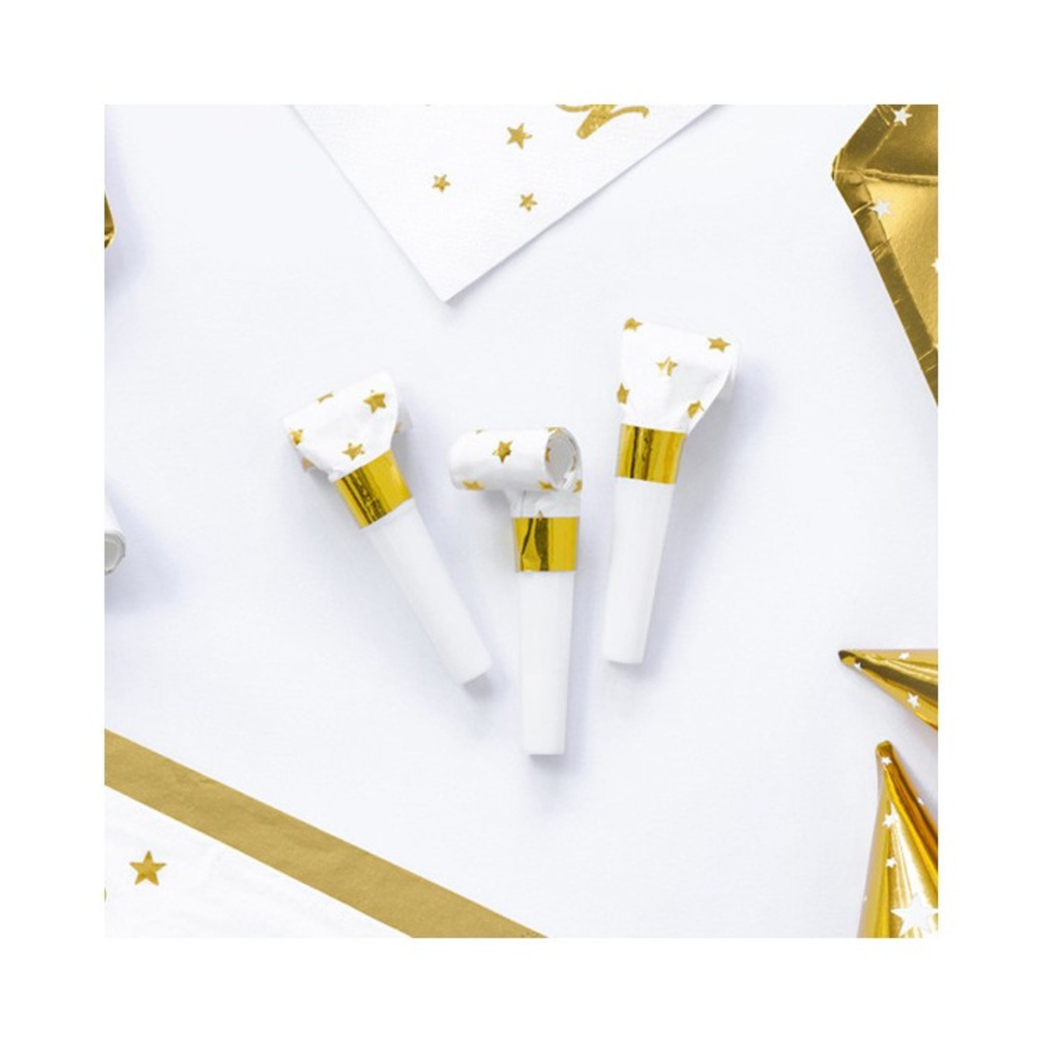 Vita blåsormar med stjärnor i guld. De perfekta blåsormarna för t.ex nyårsfesten. Storlek på dessa (när de är outblåsta är ca 8,5 cm. perfekt att lägga fram vid dukningen eller dela ut vid tolvslaget på nyår!