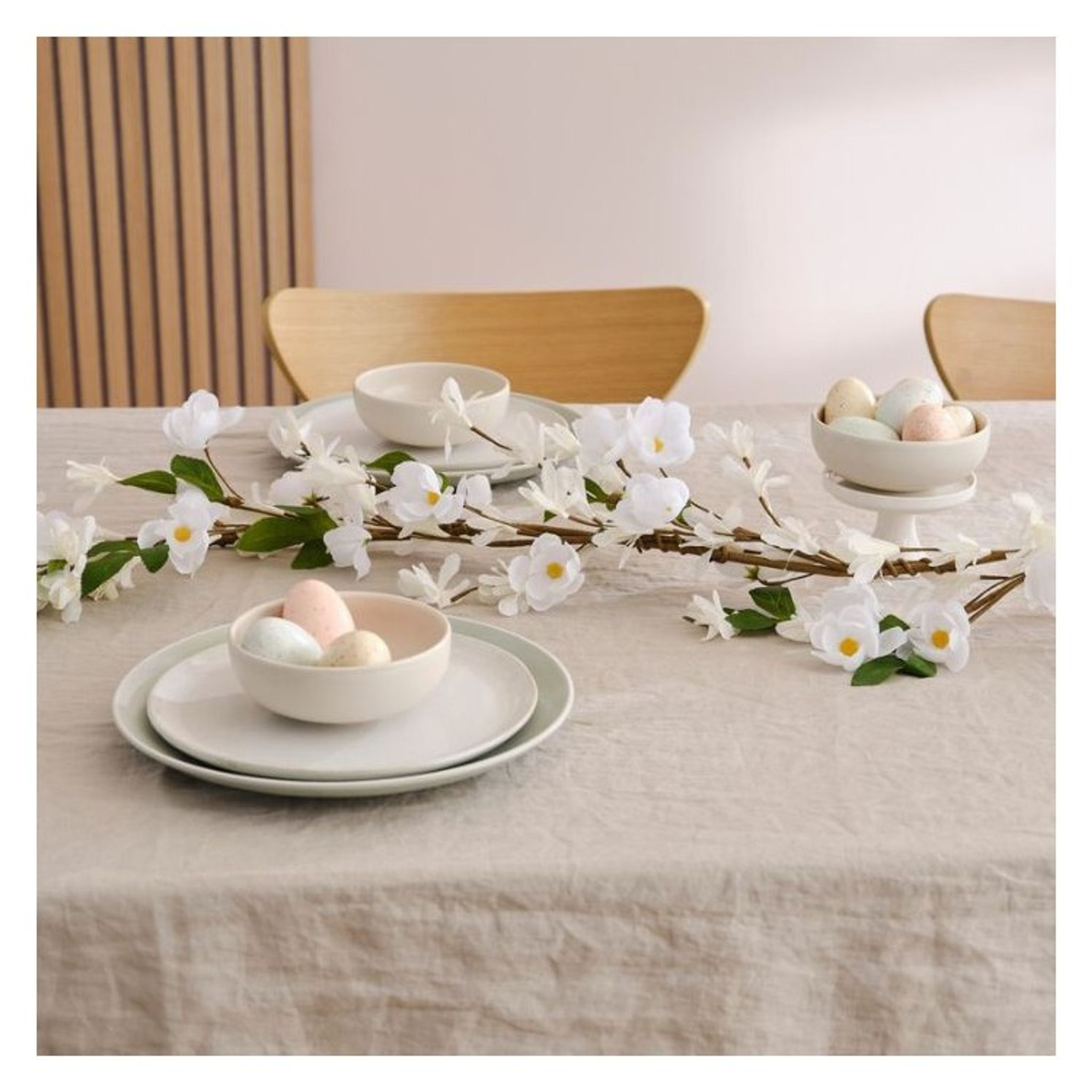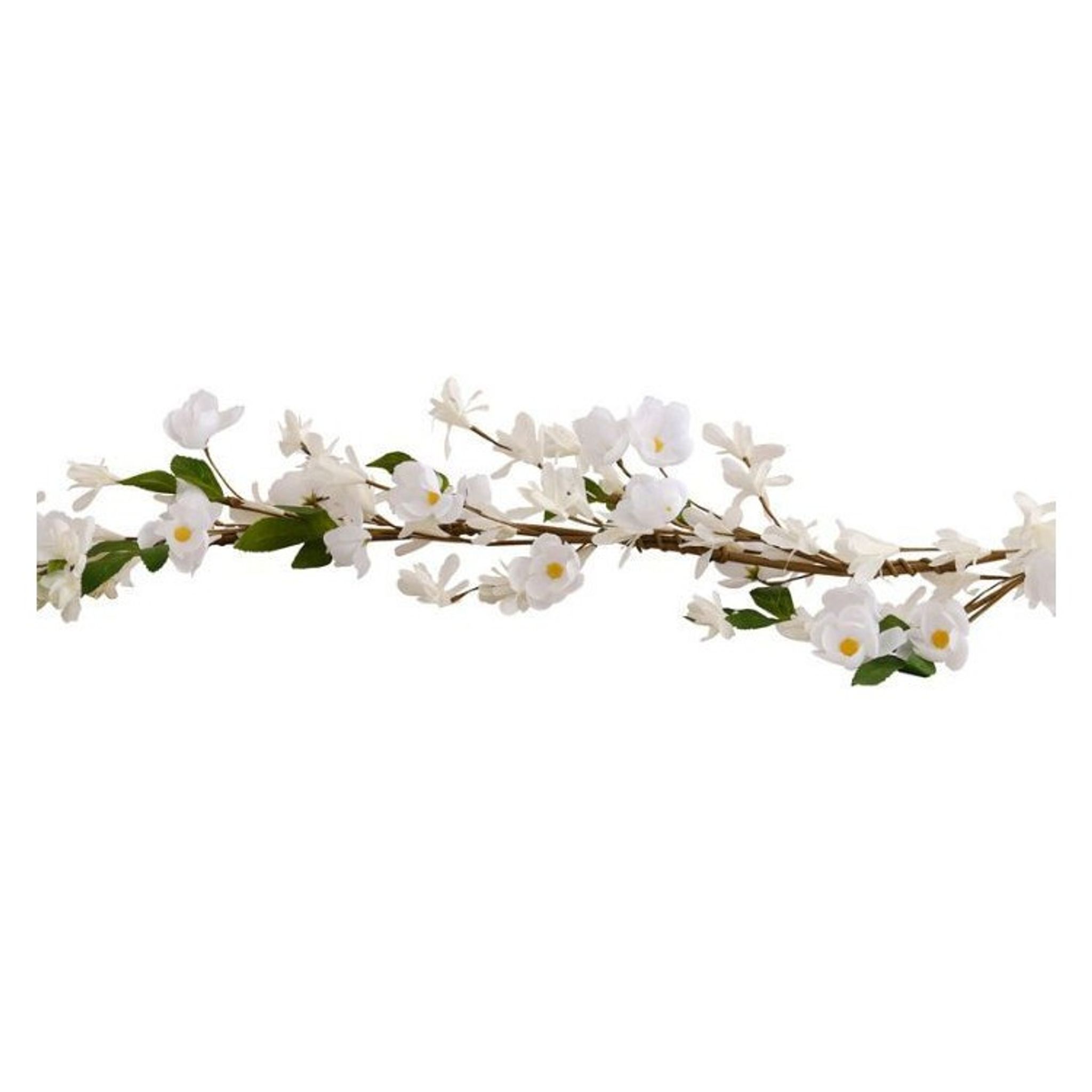 Dekorativ girlang med vita blommor som passar fint att dekorera från år till år på bordet. Fint både till vardag och fest. Priset avser: 1st girlang Längd: 1,8 meter