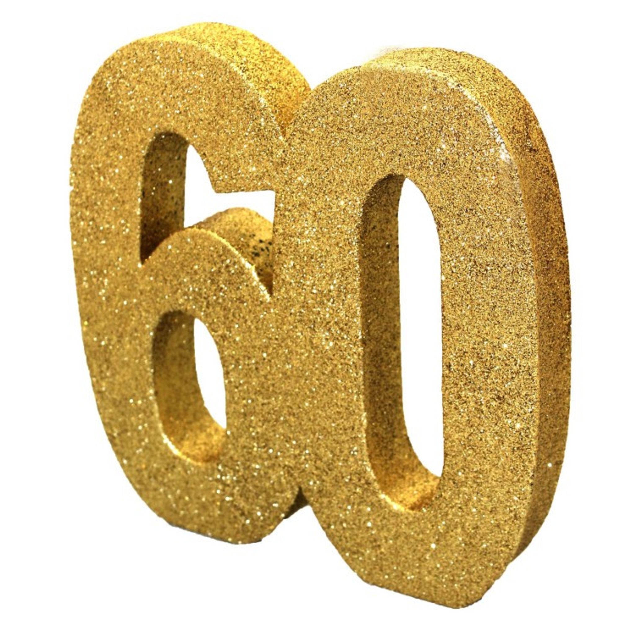 Fantastiskt fin bordsdekoration i glittrigt guld och med siffran 60.