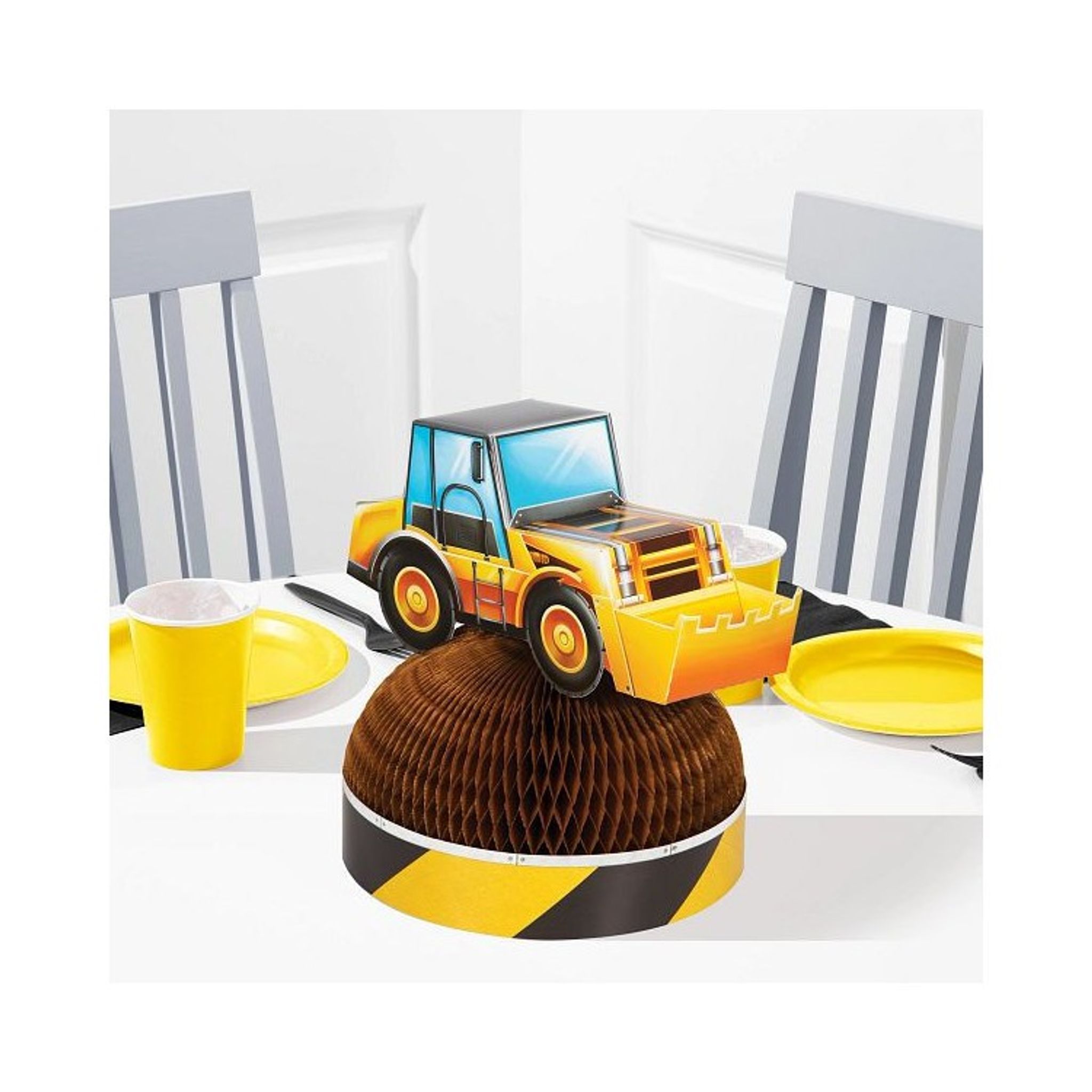 Snygg bordsdekoration i form av en grävmaskin. Perfekt att använda som dekoration på kalaset med temat Byggbilar. Snygg detalj som även blir en rolig dekoration att spara efter kalaset!