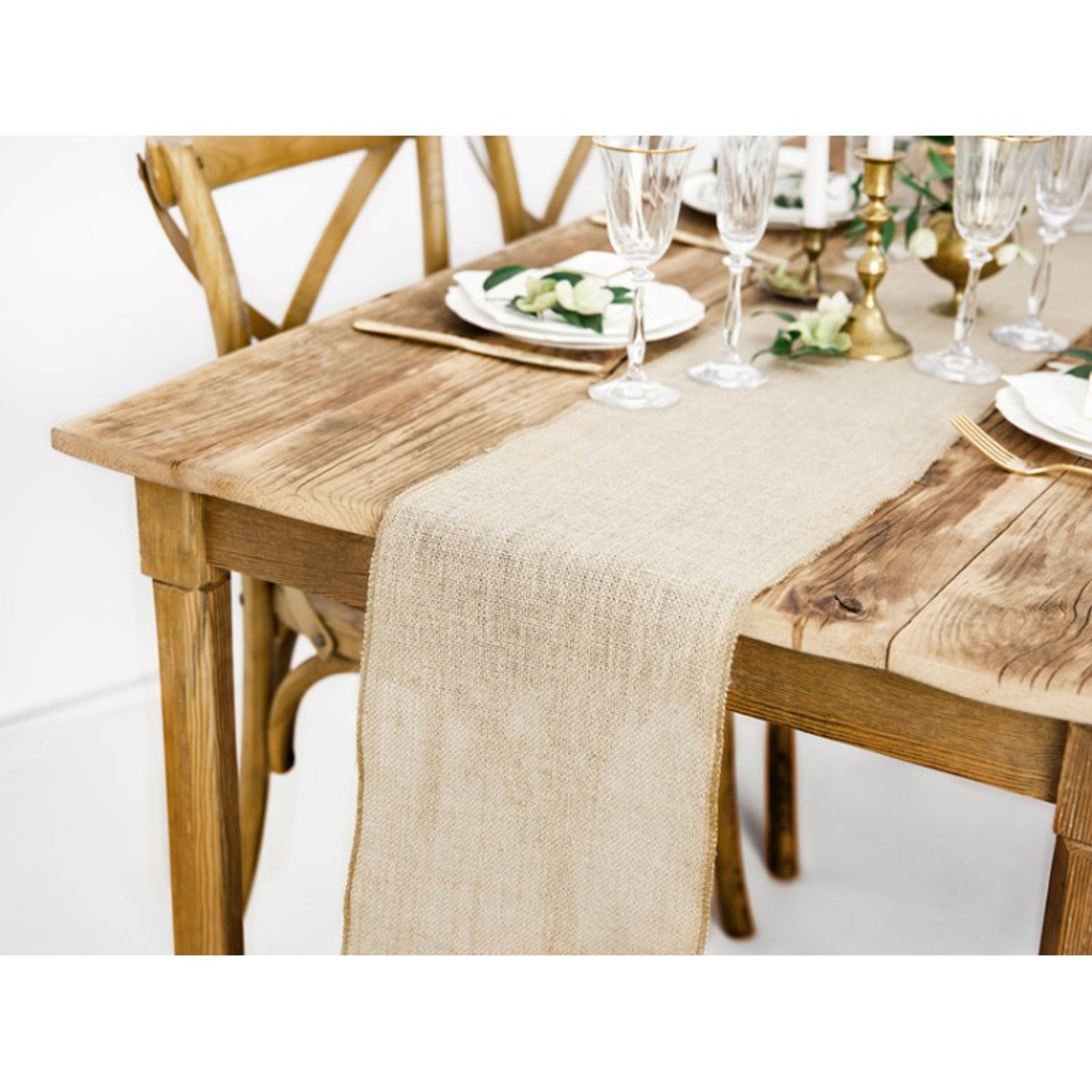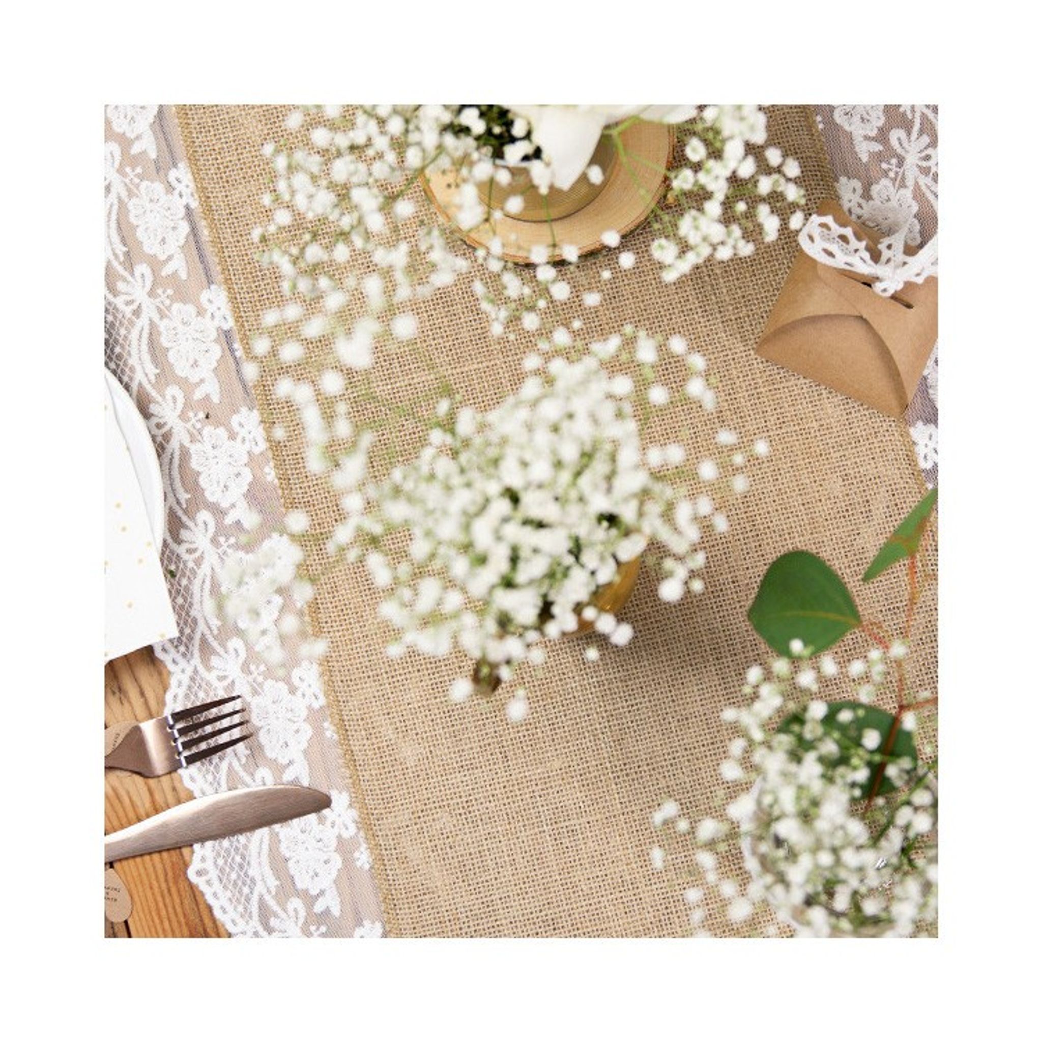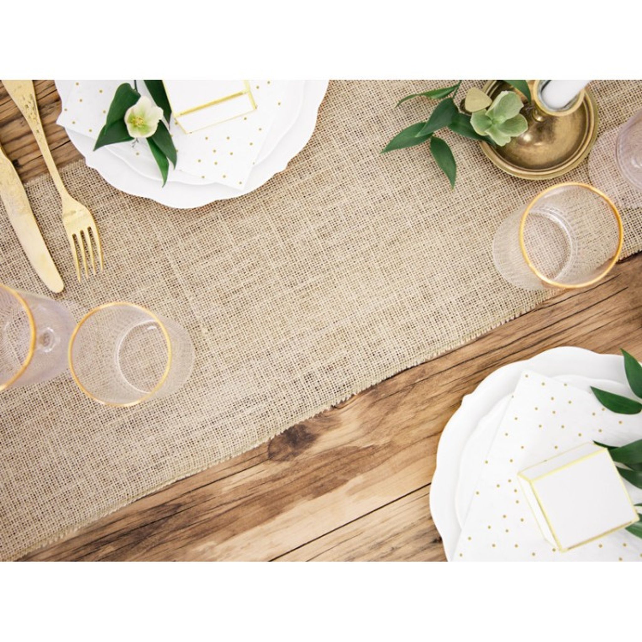 Duka snyggt med denna bordslöpare av juteväv. Bordslöparen passar för både bröllop och kalas eller varför inte till julbordet? Längd: 5 meter Bredd: 28 cm