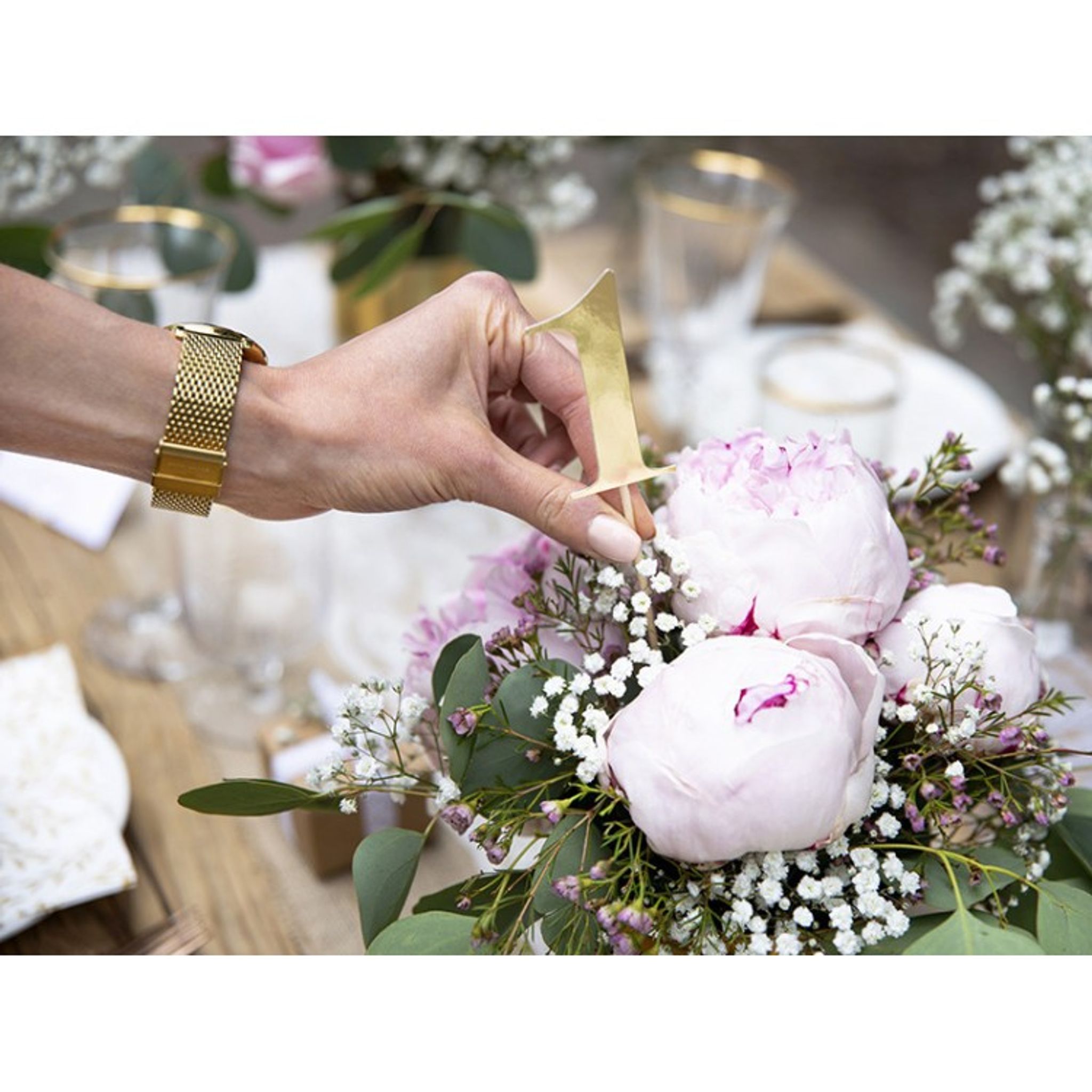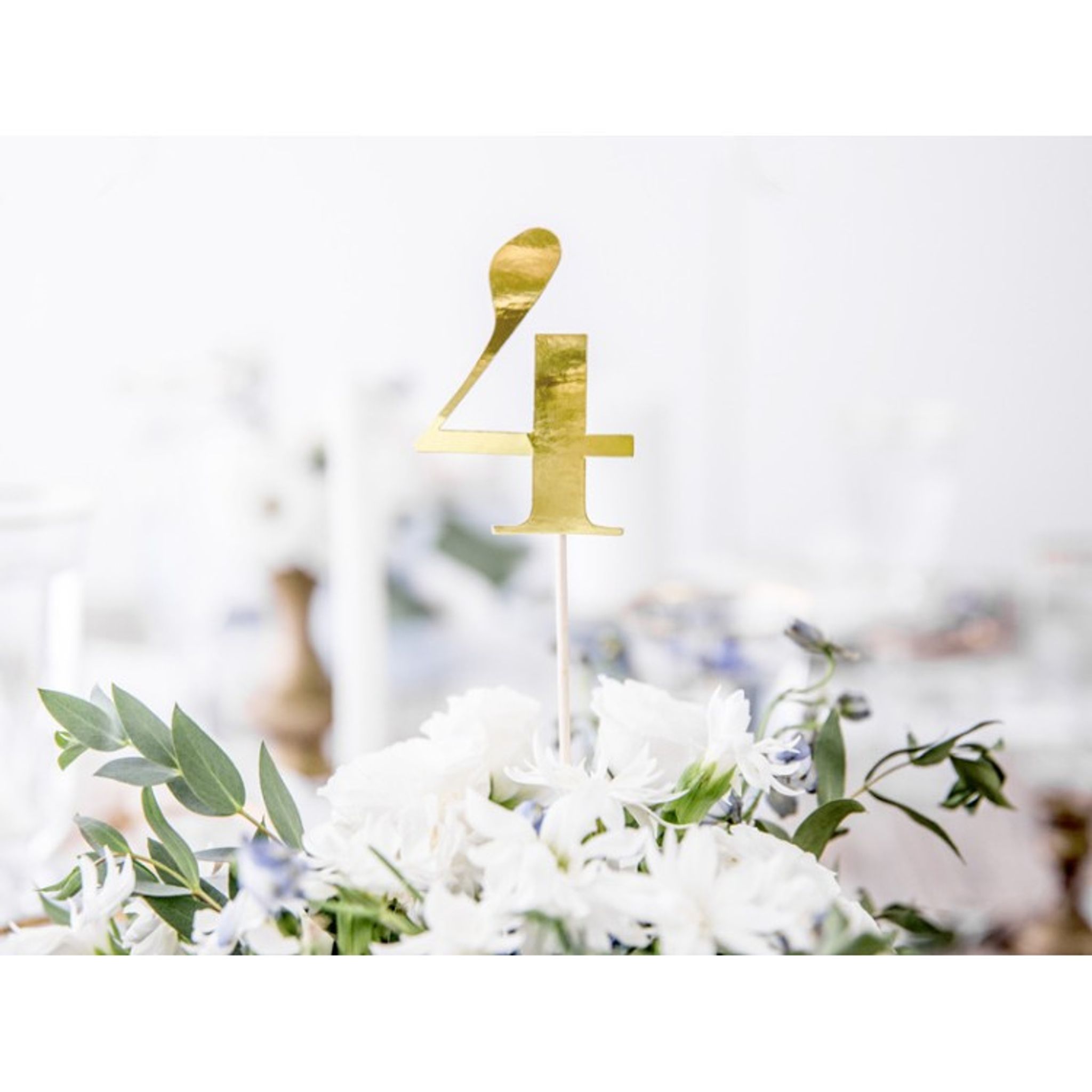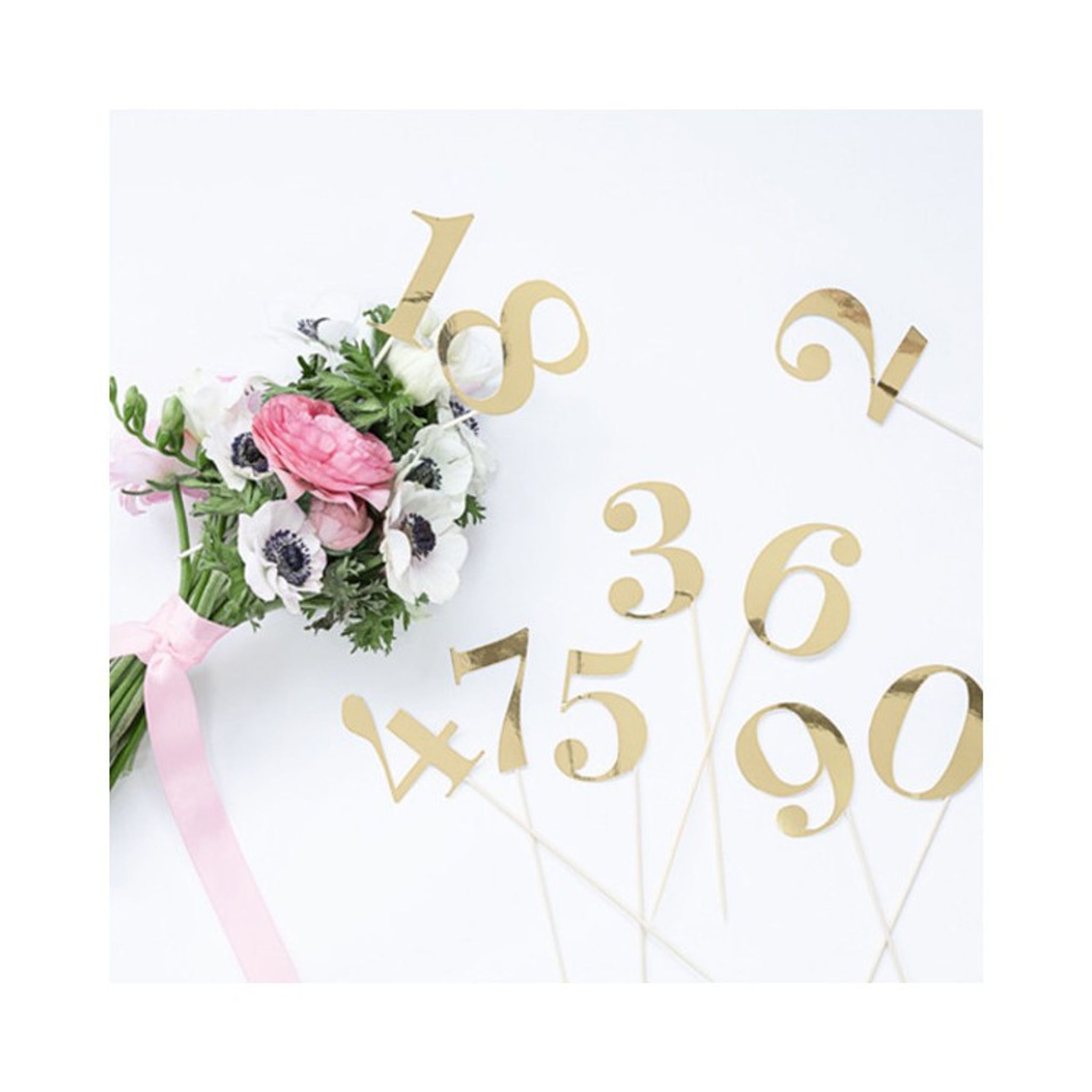 Dekorativa och stilrena bordsnummer som är av guldfolierat kraftigt papper. Siffrorna sitter på en pinne som du enkelt kan sticka ner i en blomma eller kanske tårtan beroende på hur du vill använda siffrorna.