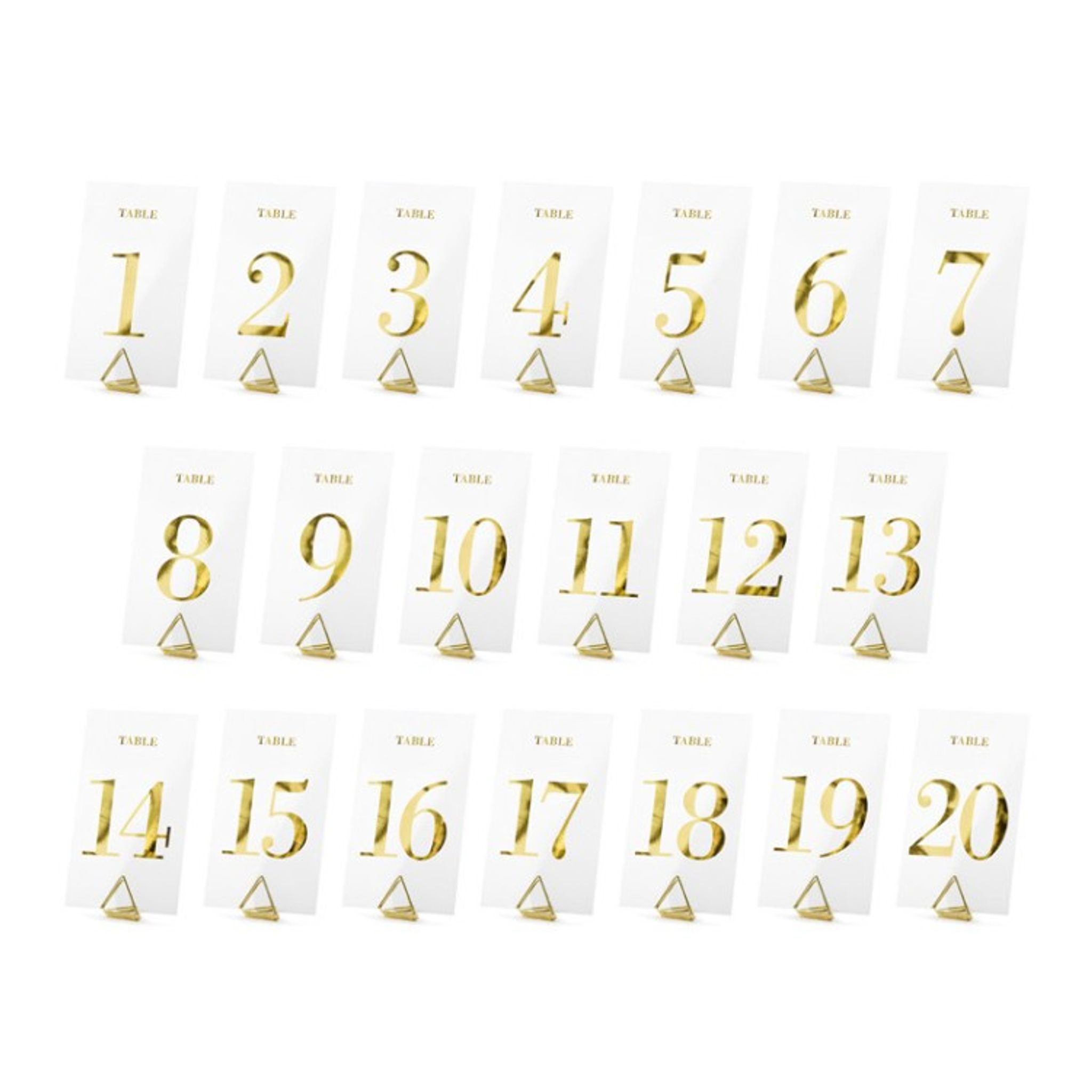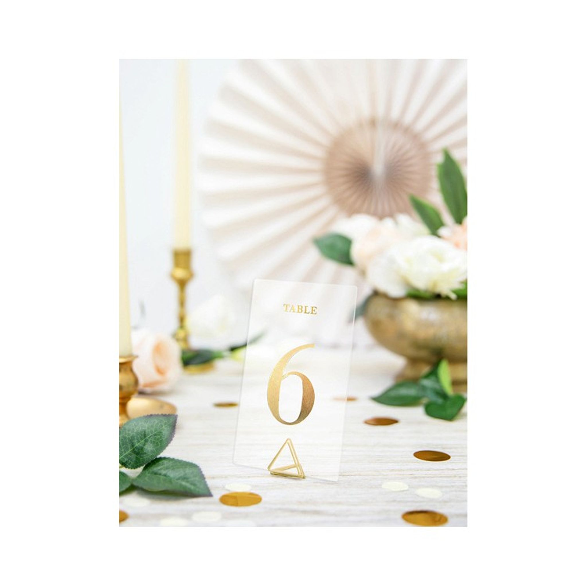 Våra snygg guldbordskortnummer placerar du på dina bord så att gästerna enkelt kan hitta sin plats! Låt gästerna enkelt hitta sin plats vid bordet med detta vackra guldfolie kort som är transparenta. En perfekt detalj för den perfekta dagen.