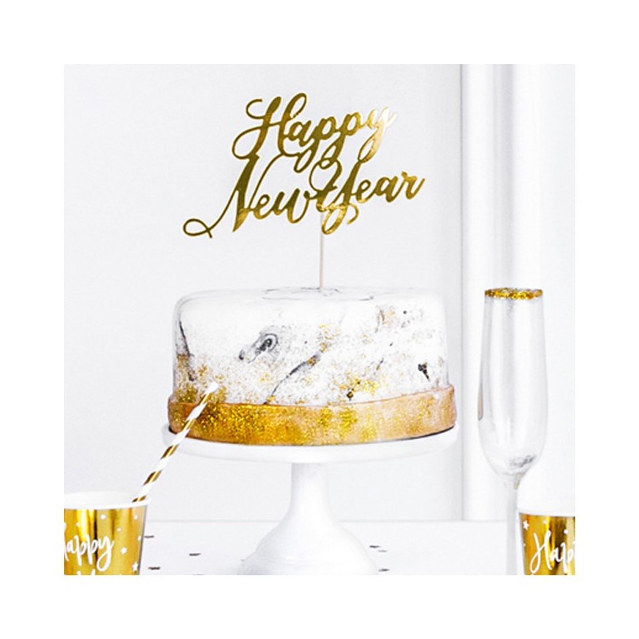 Då har du här den perfekta dekorationen, en cake topper i guld med texten Happy New Year. Bara att sticka ner i bakverket och vips så har du skapat en festlig nyårskänsla.