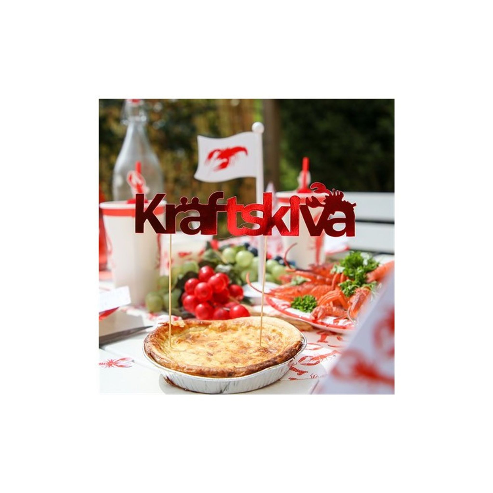 Röda dekorationer till kräftskivan är ett måste tycker vi på Partytajm! Den här läckra cake toppern i folierad röd färg blir pricken över i:et på kräftfesten. Stoppa ner i pajen, efterrätten eller bara i skålen fylld med kräftor.