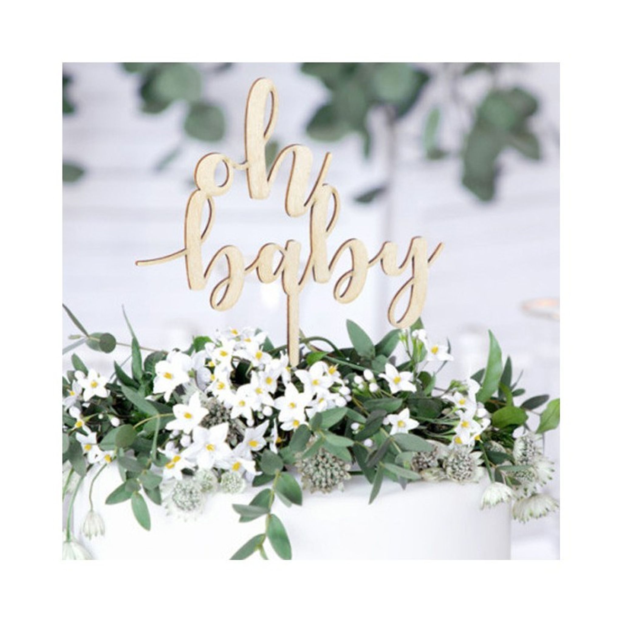 Dekorera babyns första tårta med hjälp av denna jättefina tårtdekoration av trä med texten Oh baby. Du kan naturligtvis använda tårtdekorationen till annat än tårta när du skall dekorera till babyshowern eller kanske till dopet.