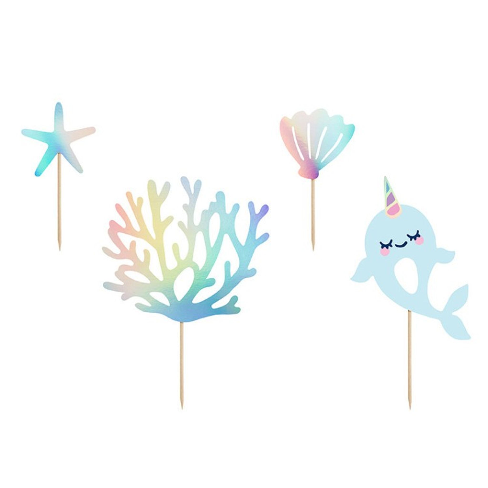 Dekorera din tårta eller andra godsaker på barnkalaset med hjälp av dessa söta cake toppers som har motiv från havet.