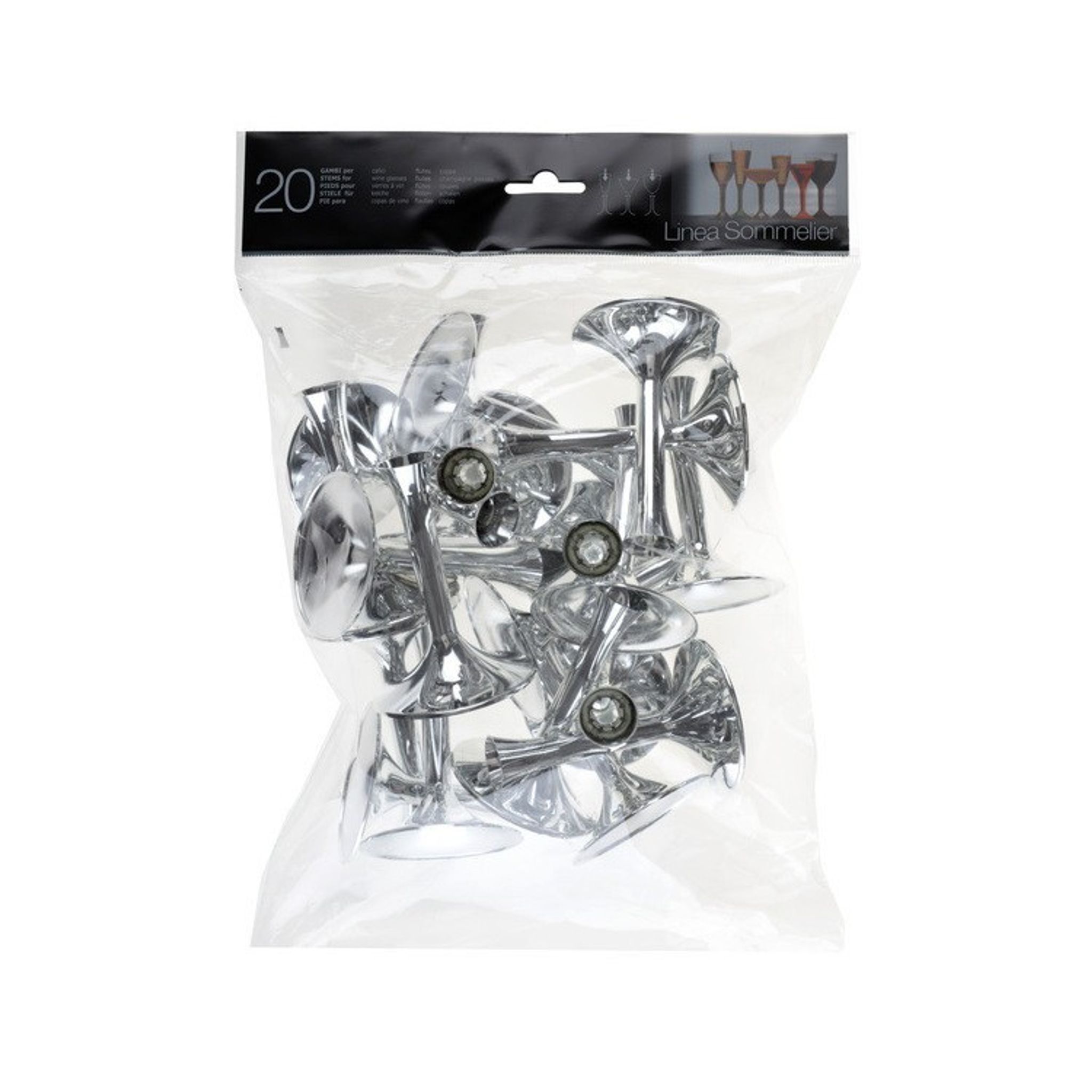 Här väljer du på 20 st champagneglas, 20 st cocktailglas eller 20 st vinglas. Du väljer sedan om du vill ha guld-, silver-, eller roséfot till glasen.