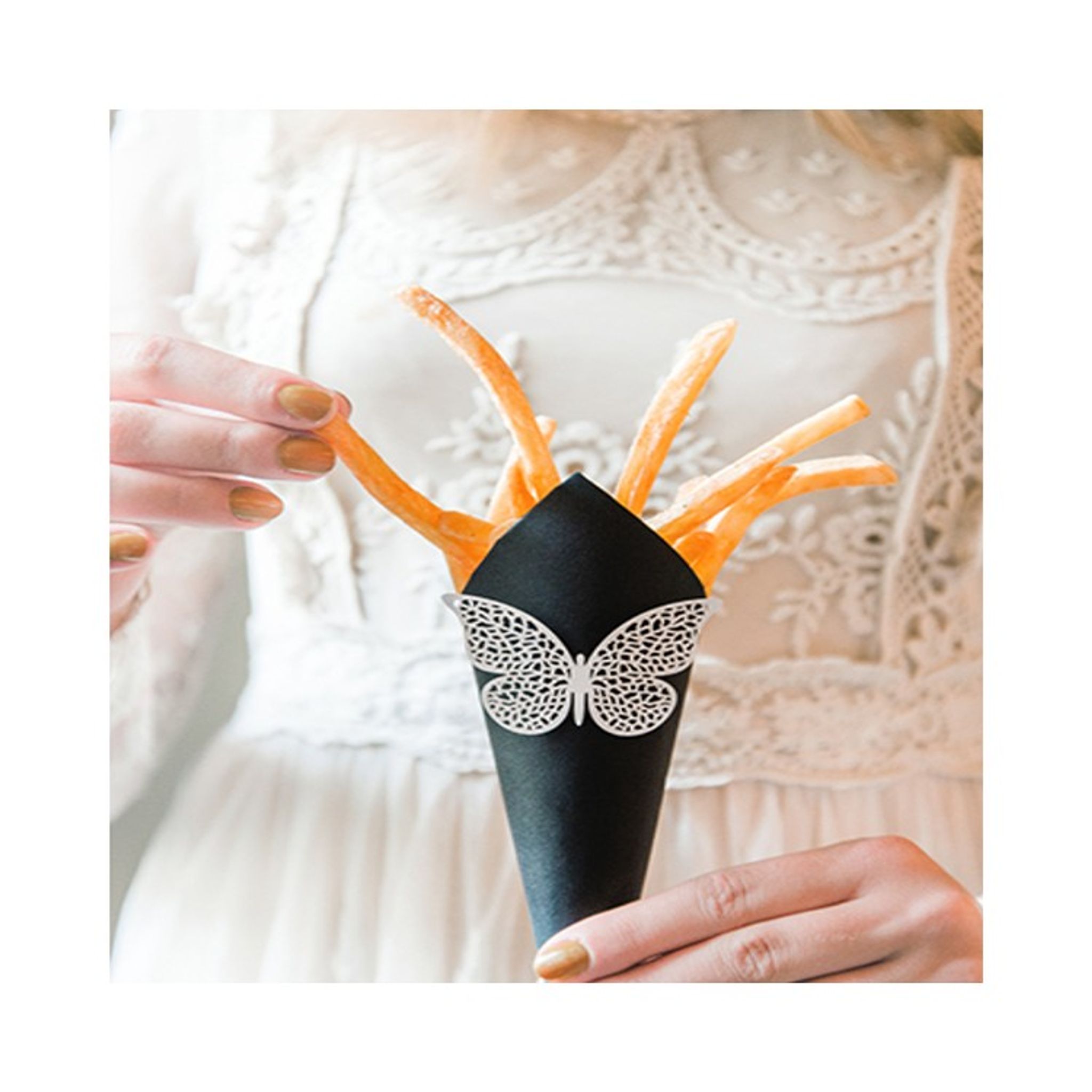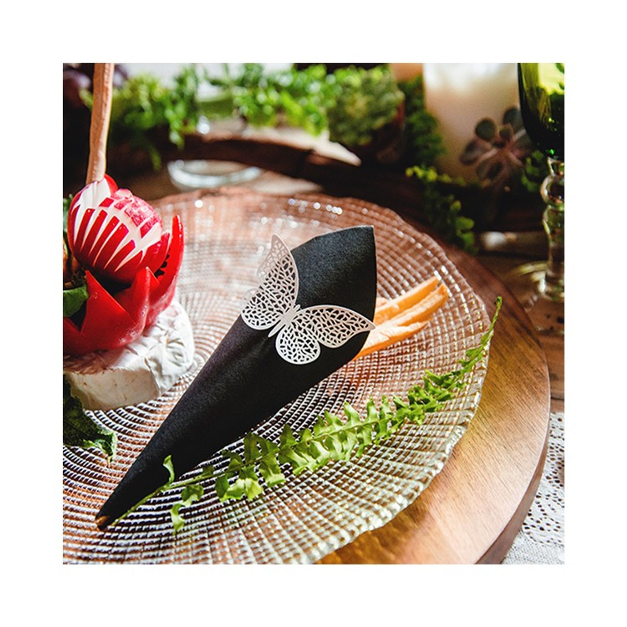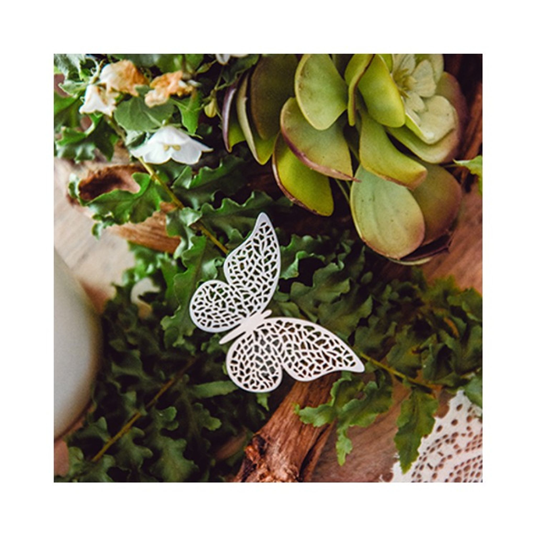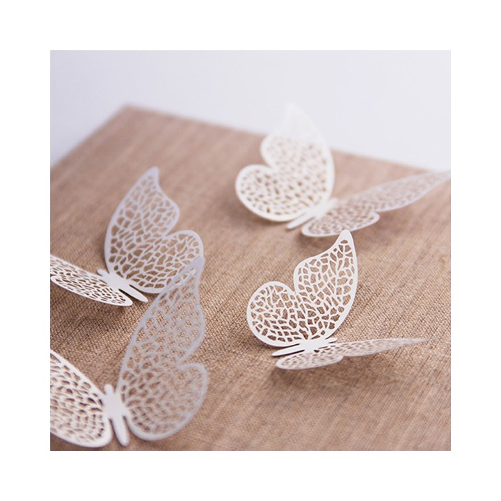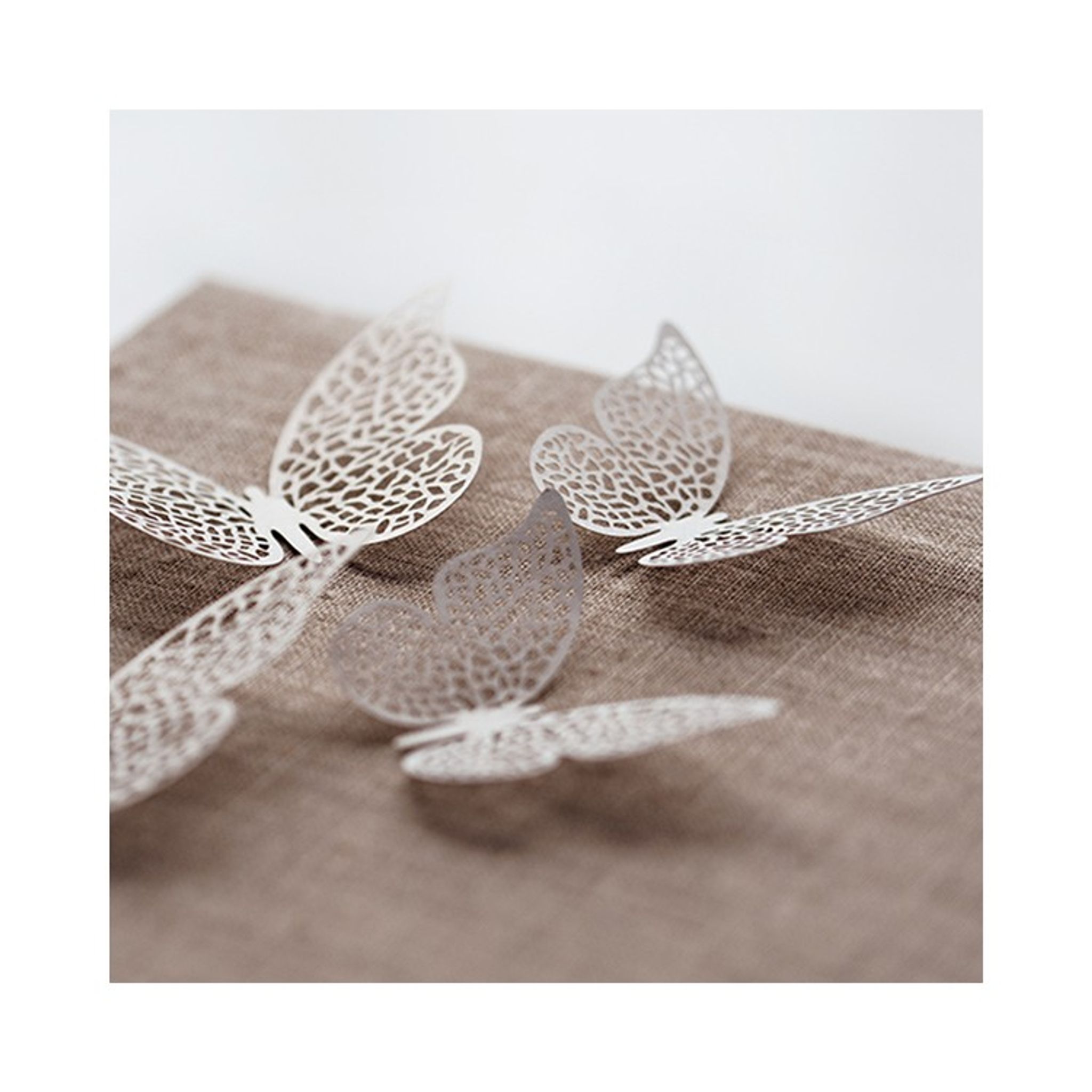 Vackra fjärilar i papper att dekorera dukning eller pyssla med. Storlek: 8 x 5 cm. Priset avser 10 stycken fjärilar.