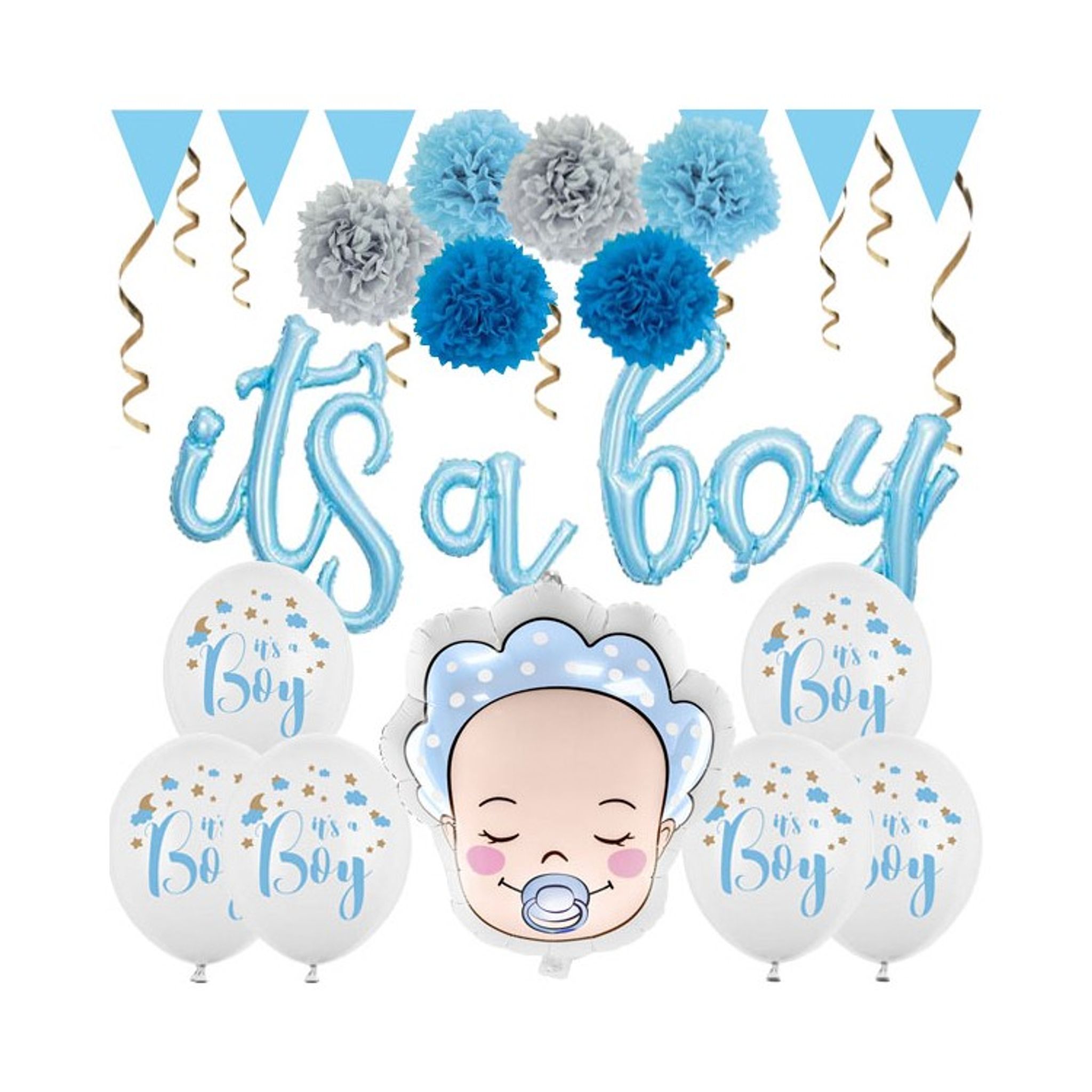 It's a boy! Med hjälp av det här kitet med dekorationer kan du överraska den blivande mamman som väntar en liten pojke.