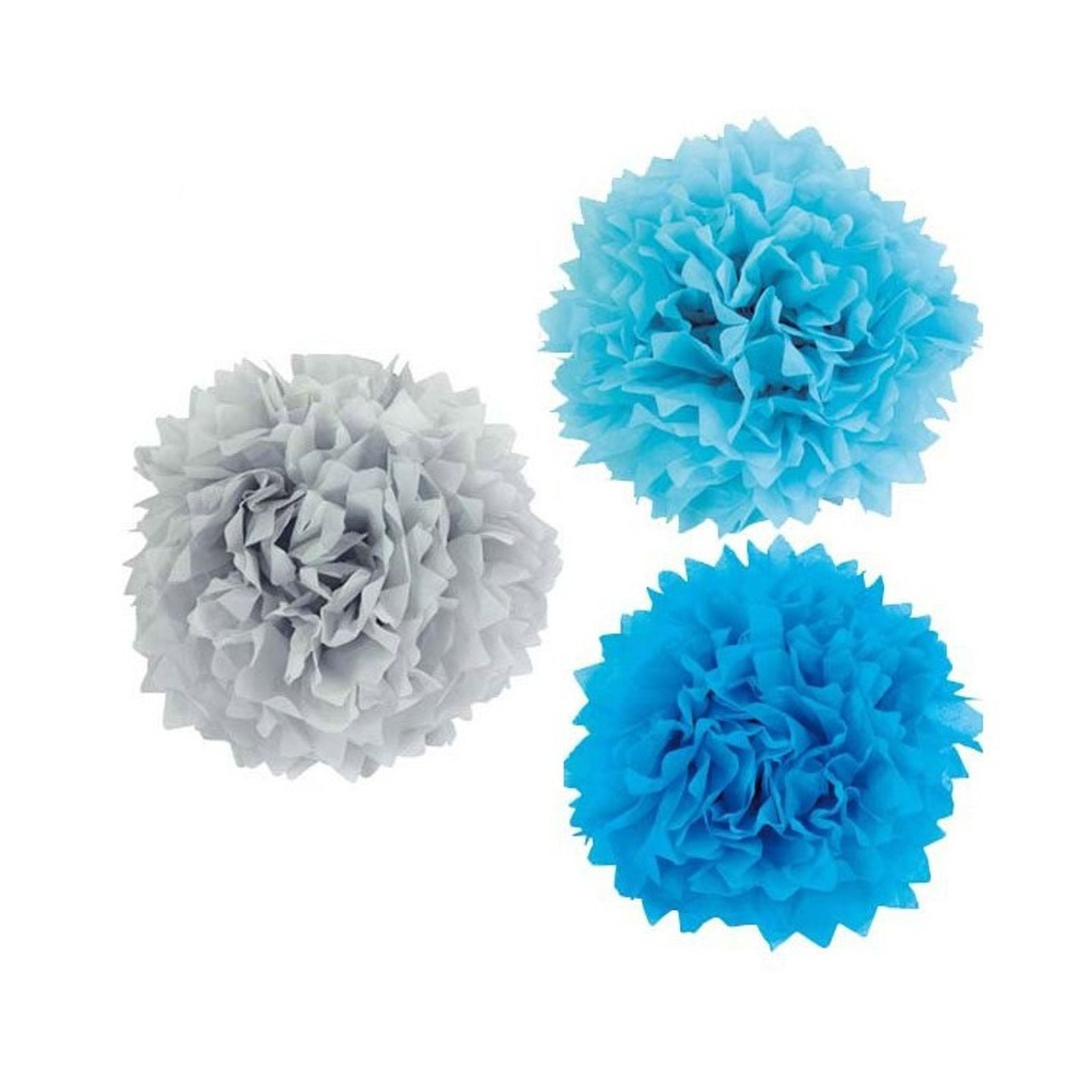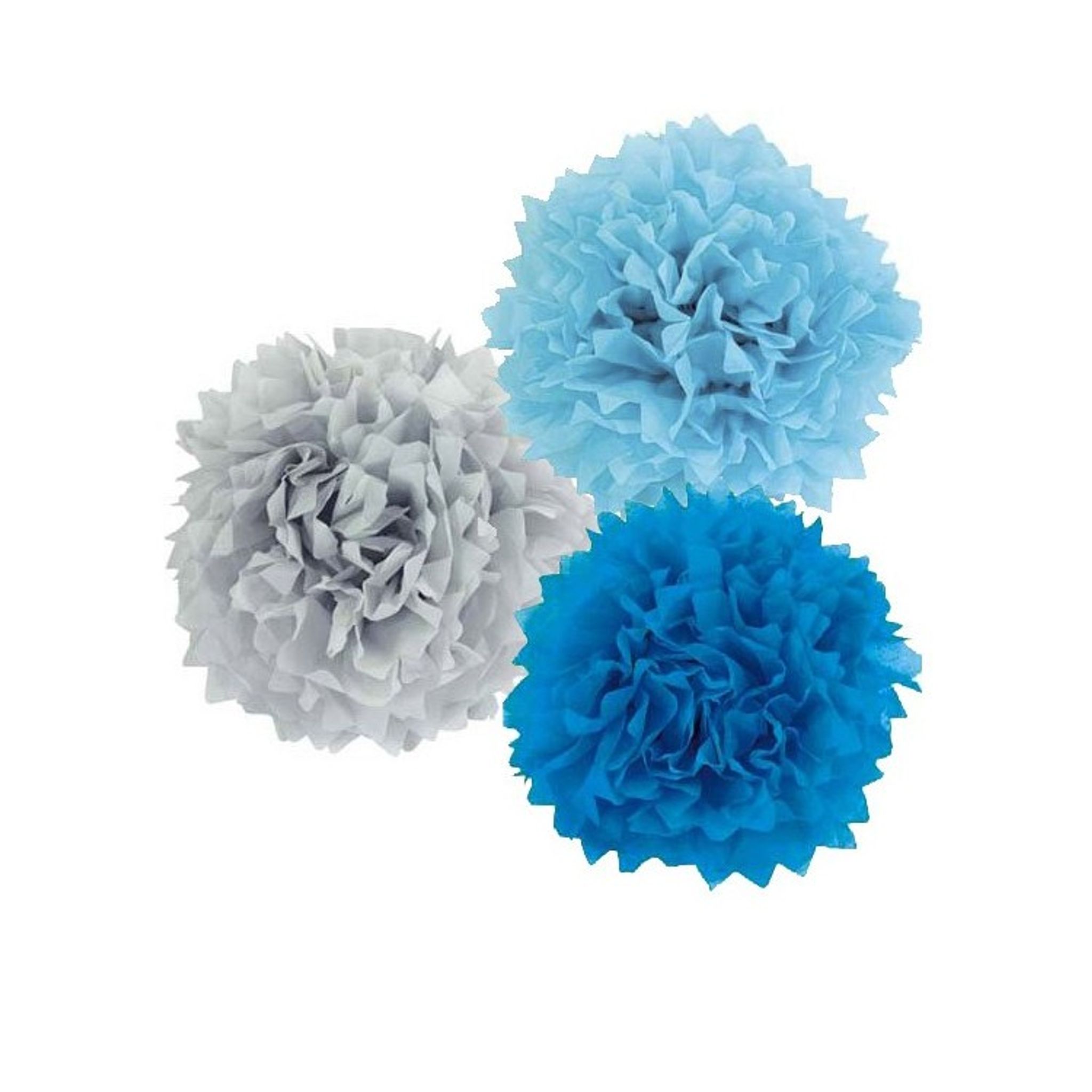Med Pom Poms Blåmix i olika vackra blå färger kan du skapa en magisk fest med sommar, båt eller havstema där man förflyttar sig till en annan miljö. Blåmixen kommer med tre olika pom poms i förpackningen: grå, ljusblå och lite mörkare blå. Häng upp som dekoration ovanför bordet på kalaset och kombinera med blå girlanger och servetter för att förstärka temat. Fint också att ha på bordet eller i fönstret! Passar för alla typer av fester och kalas som bröllop, examen eller varför inte för dopfesten? Pom Pomsen är gjorda i papper och är därför också utmärkta som lekfullt inslag på barnkalaset!Storlek: 35 cm och 25 cm