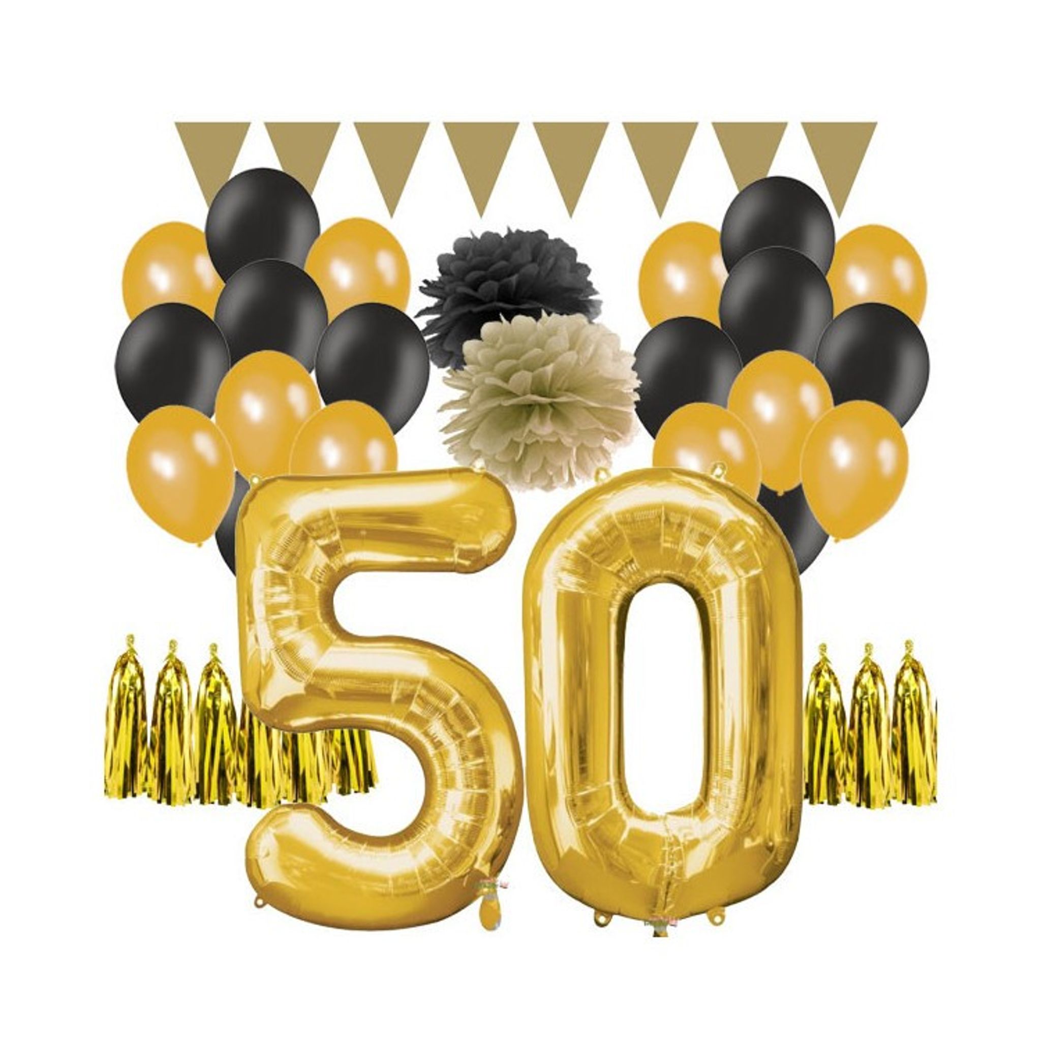 Bjud in till ett 50 års-kalas och dekorera snyggt med hjälp av våra folieballonger med siffror och andra snygga festdekorationer. Här har vi plockat ihop ett färdigt festkit med mixade dekorationer i guld och svart som på ett enkelt och snyggt sätt fixar 50-årsfesten! Paketet är ihopsatt med populära produkter som gör det enkelt att dekorera till en av de största dagarna på året. Färgerna svart och guld passar fint ihop och matchar till många av våra kalasartiklar. Vi hjälper dig med ett baspaket som vi tycker är ett måste för en snygg dukning.