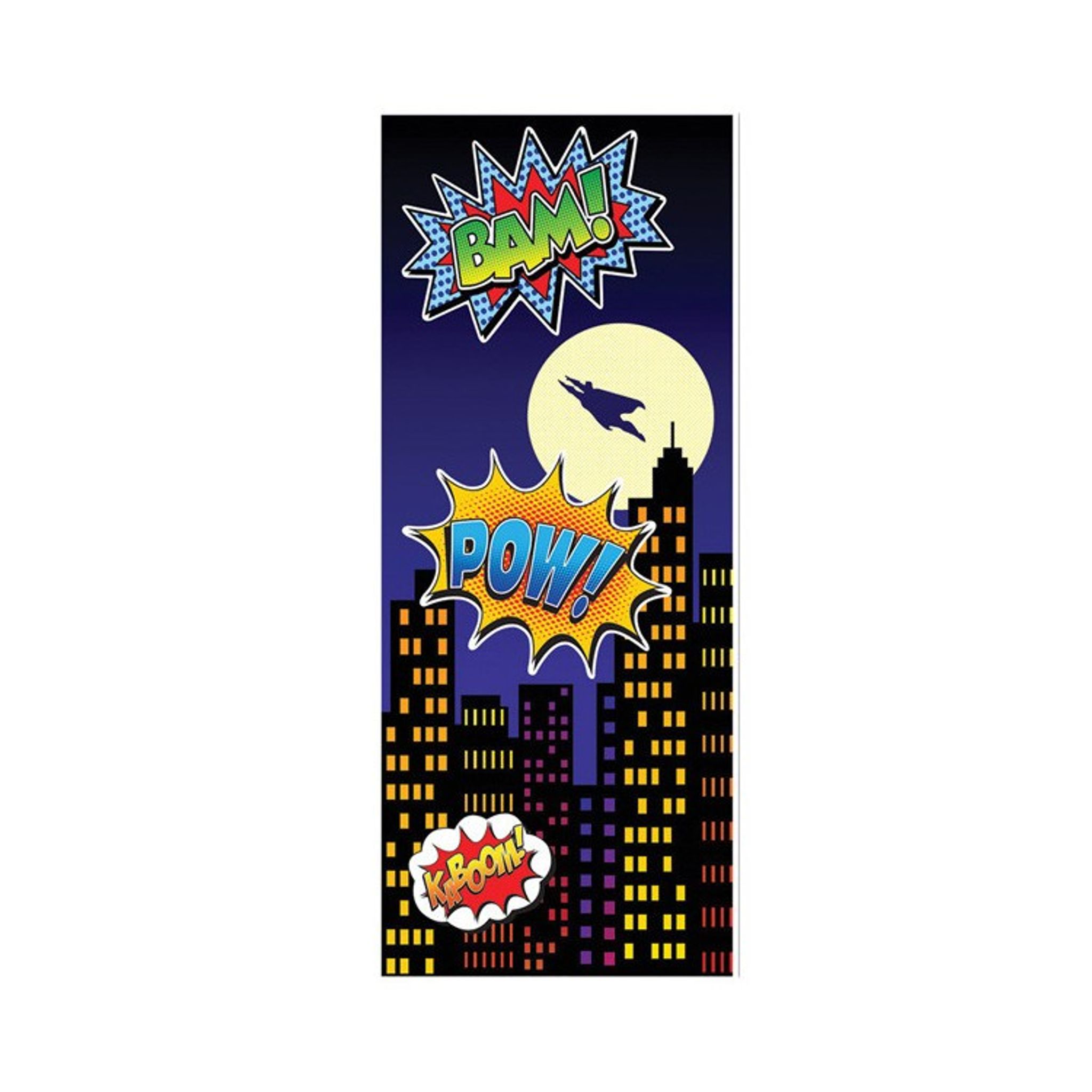 Bjud in till ett spännande superhjältekalas med denna dörrdekoration, som samtidigt blir en fin detalj till övriga dekorationer på kalaset. Den här kalasdekorationen sticker ur och blir en rolig överraskning för både födelsedagsbarnet och kalasgästerna.