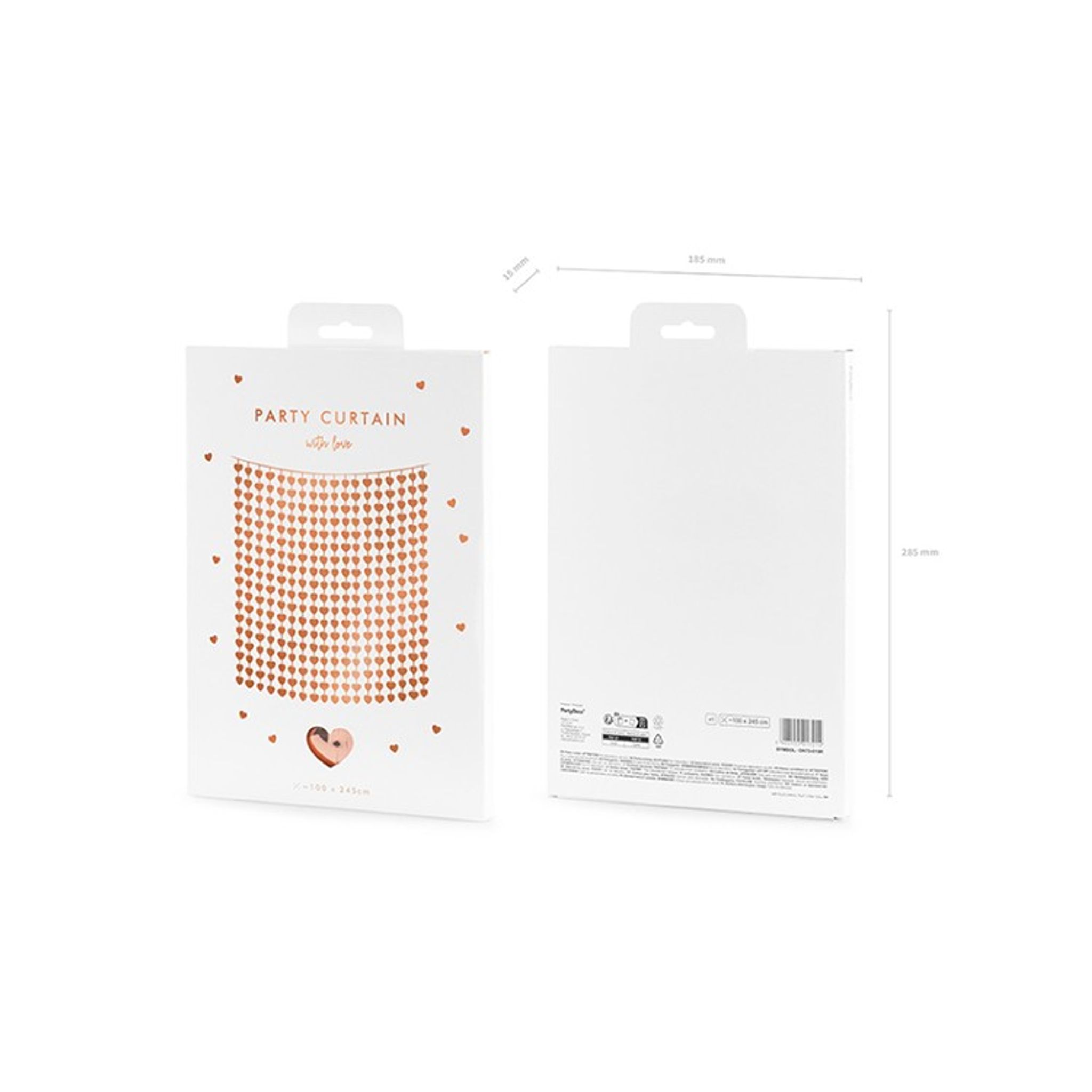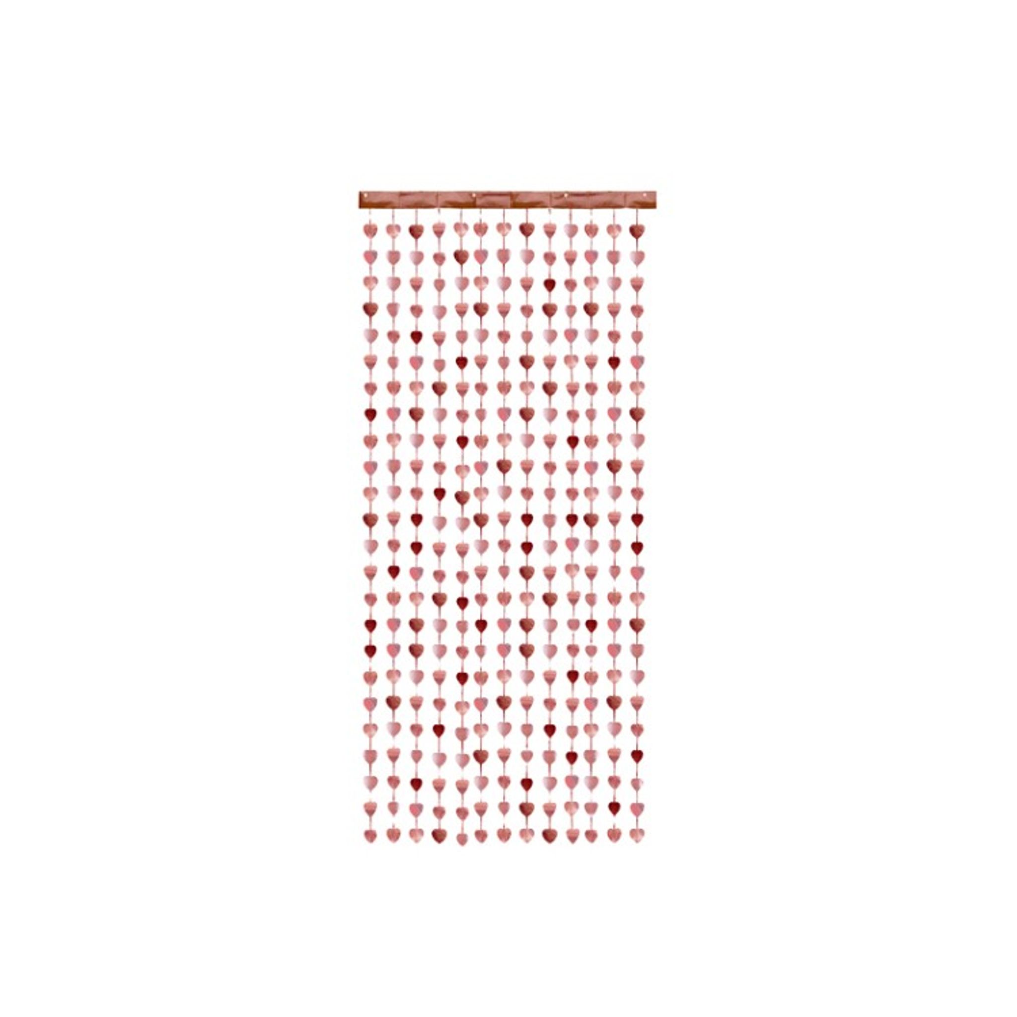 Lyxigt draperi med form av hjärtan i roséguld. Överraska gästerna genom att sätta upp draperiet i dörren så gästerna får en glamorös entré. Kombinera med Girlang Tassel och ballonger för en maffig dekoration. Låt gästerna posera framför draperiet eller gör ett showroom med entré bakom glittret. Enkelt att sätta upp och återanvänd gärna vid nästa festliga tillställning.