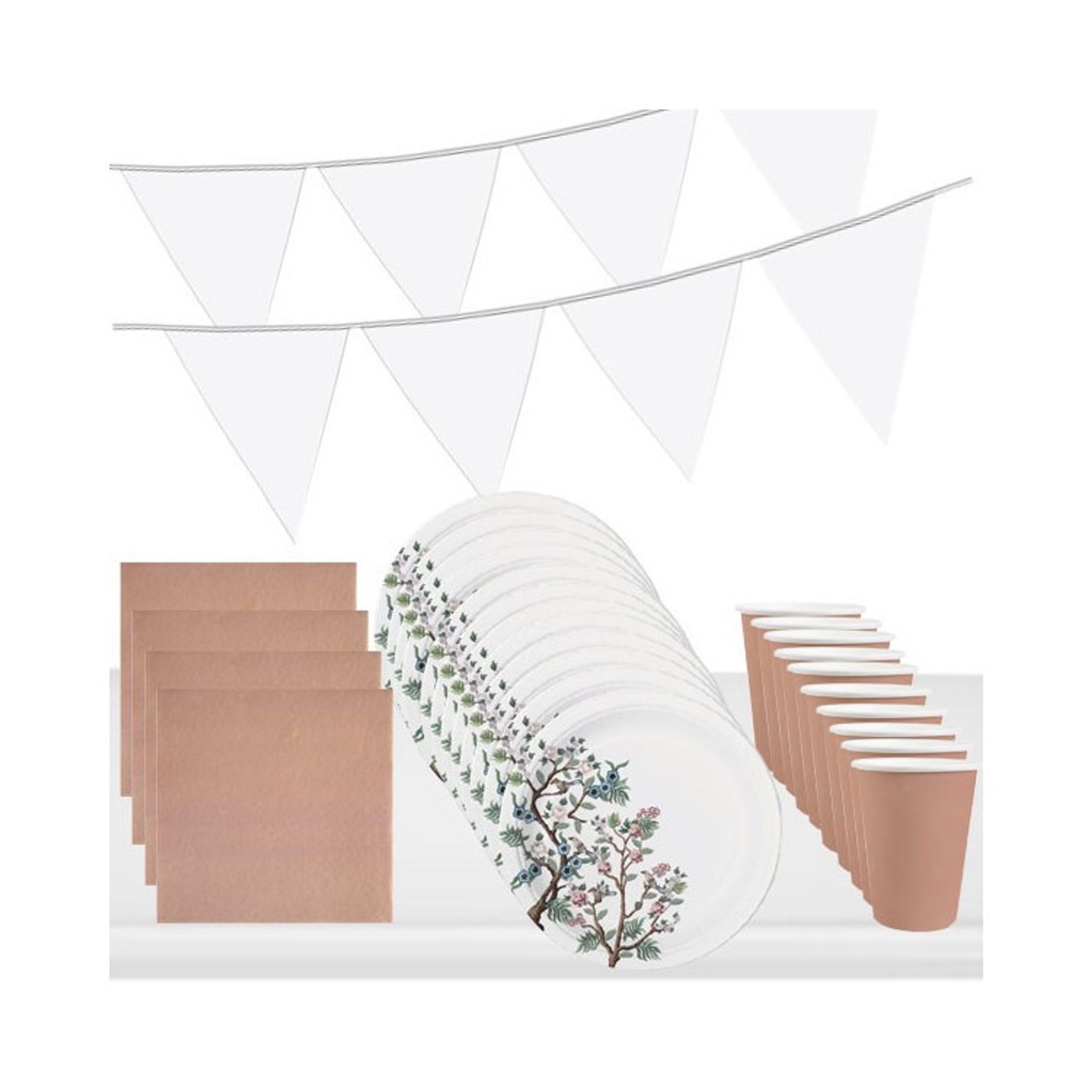 Här har vi plockat ihop ett enkelt och stilrent festpaket för 10 personer i milda färger och med motiv av kvistblommor.