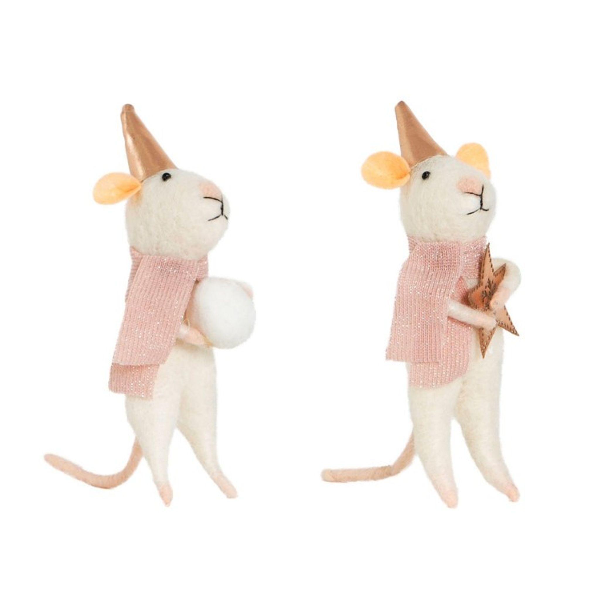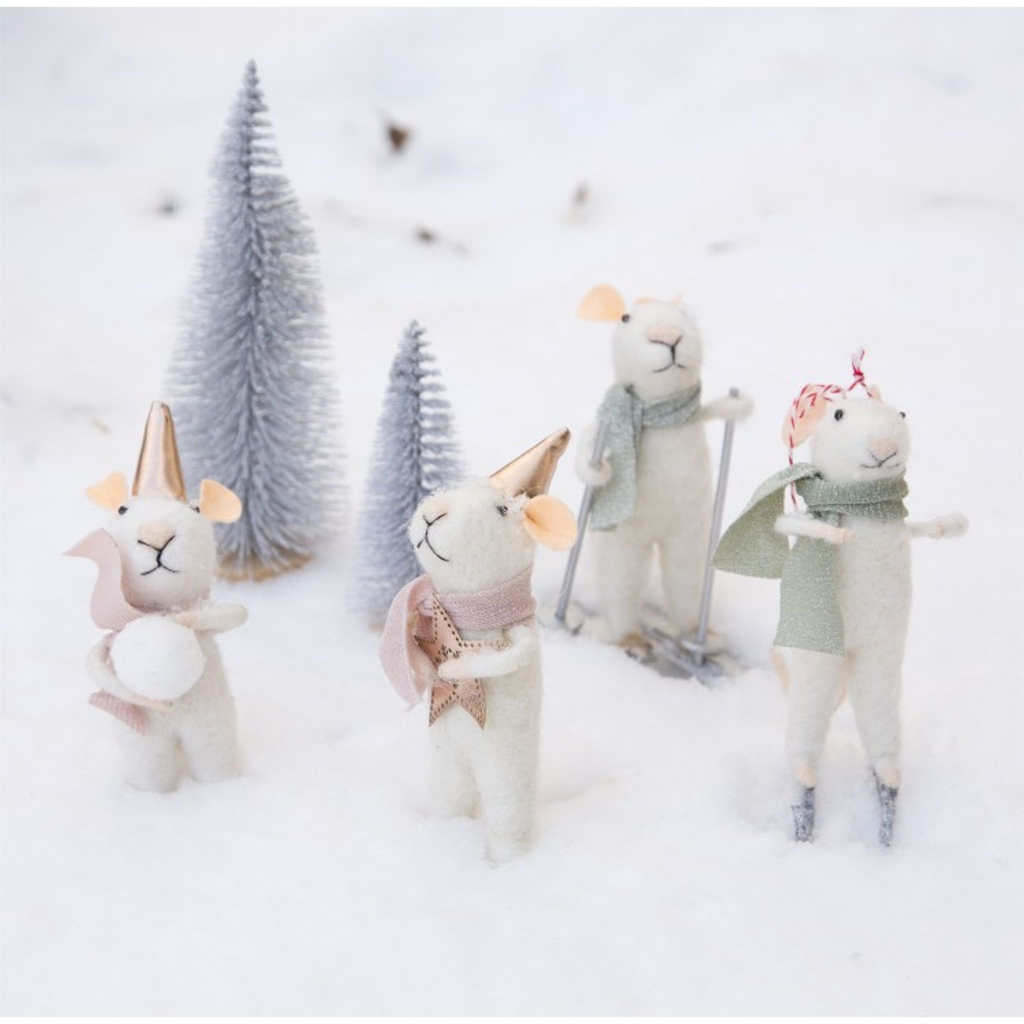 Underbara stående möss som är perfekta för att ställa i julgranen eller kanske som tillbehör till årets nissedörr.