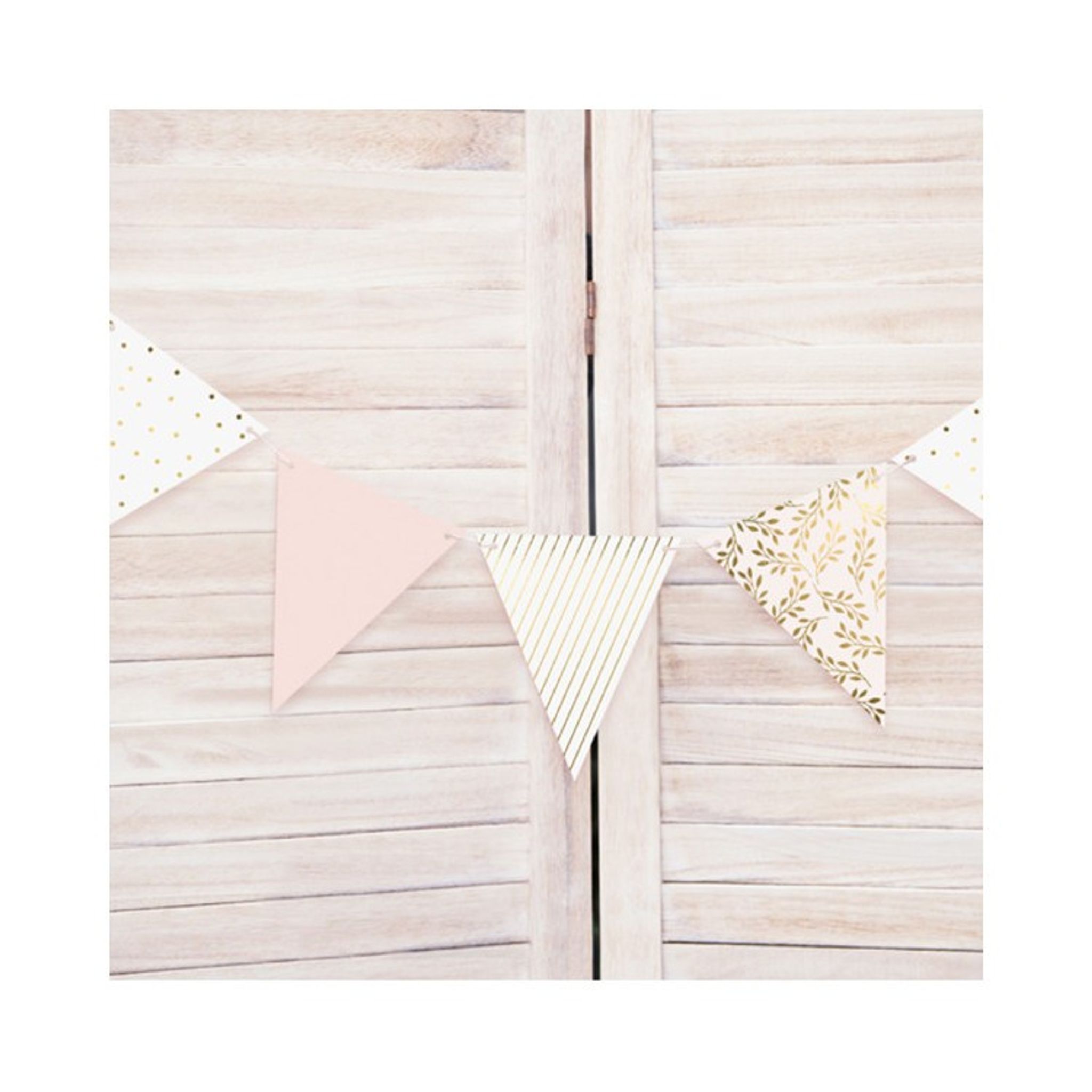 Går kalaset i dova färger som ljusrosa och guld? Denna flaggirlang är perfekt att hänga ovanför kalasbordet eller vid festens mittpunkt. Fin detalj till allt från vuxenkalas och bröllop till barnkalas. Dekorera med fördel tillsammans med andra engångsartiklar i samma toner, såsom papperstallrikar och ballonger, för en extra festlig känsla.