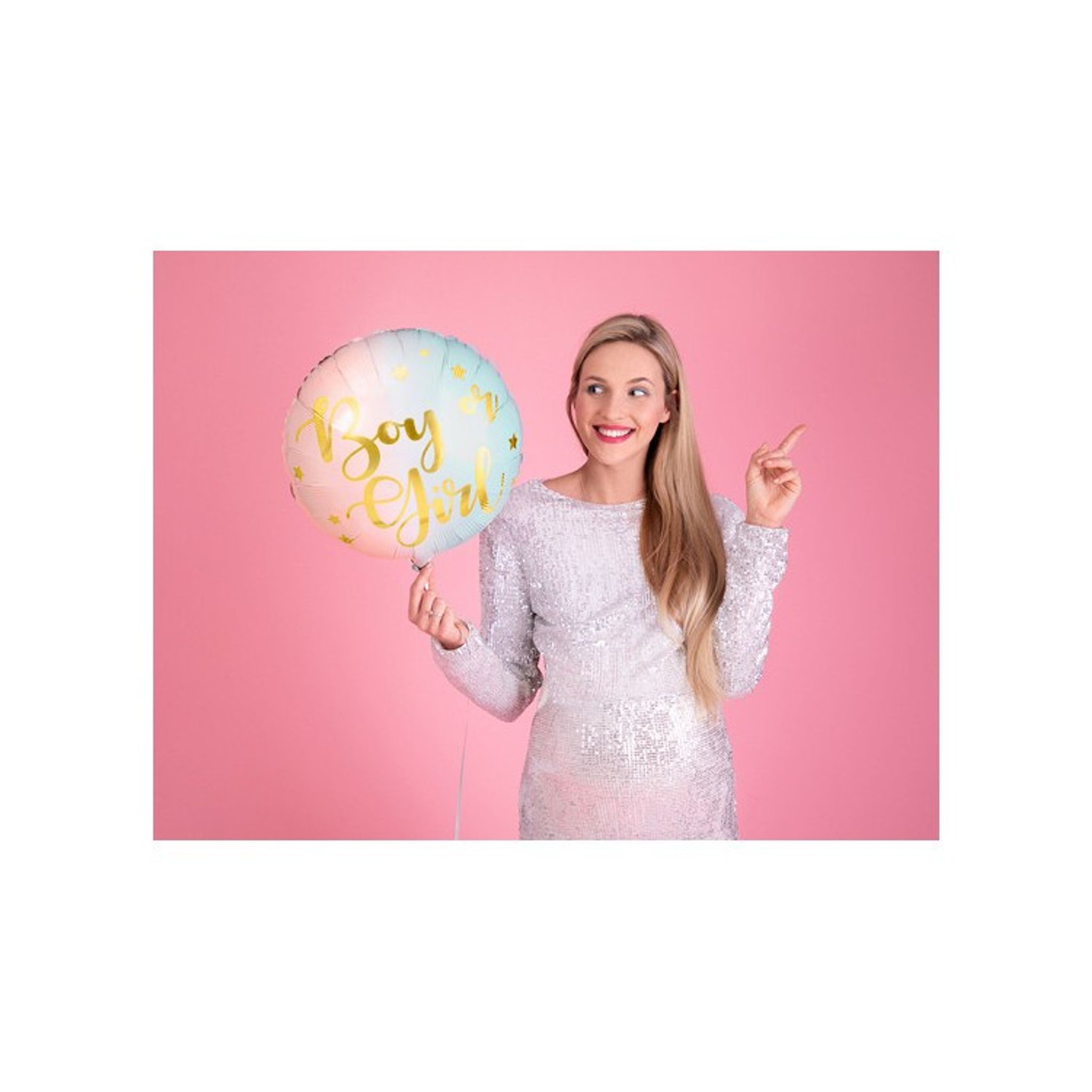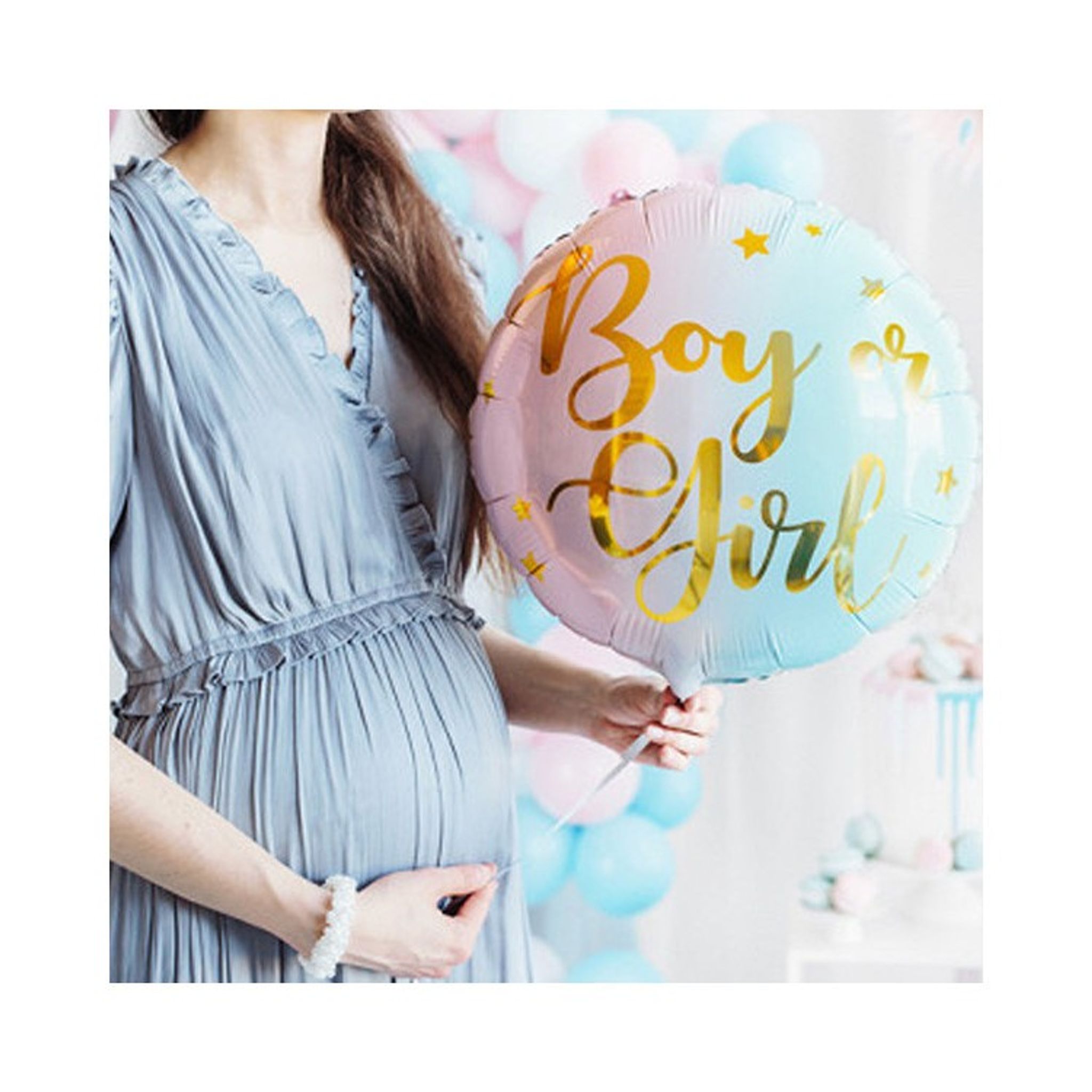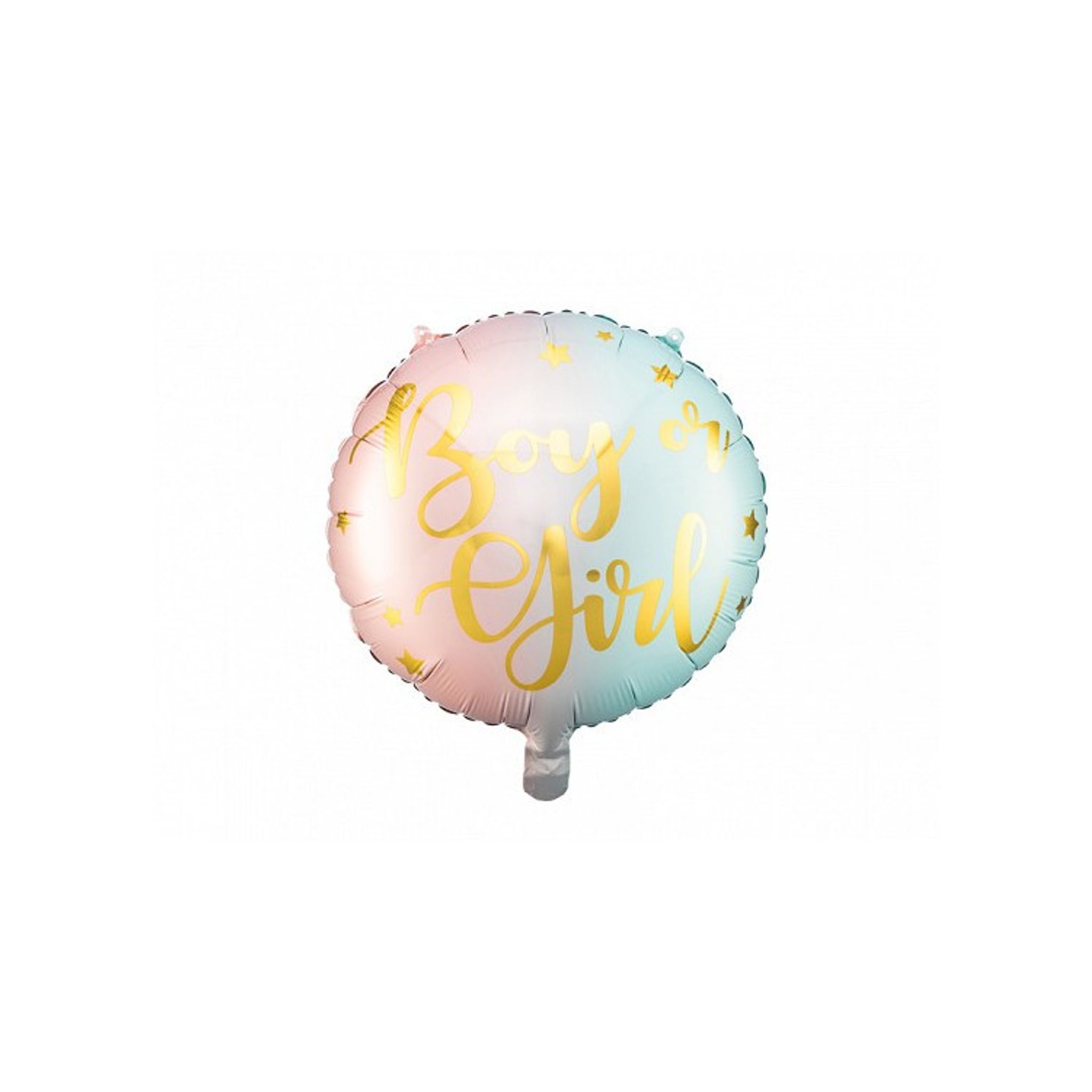 Underbar folieballong i rosa och ljusblått med texten Boy or Girl i guld. Denna ballong är perfekt att använda som dekoration på t.ex babyshowern eller varför inte på Gender Reveal festen?