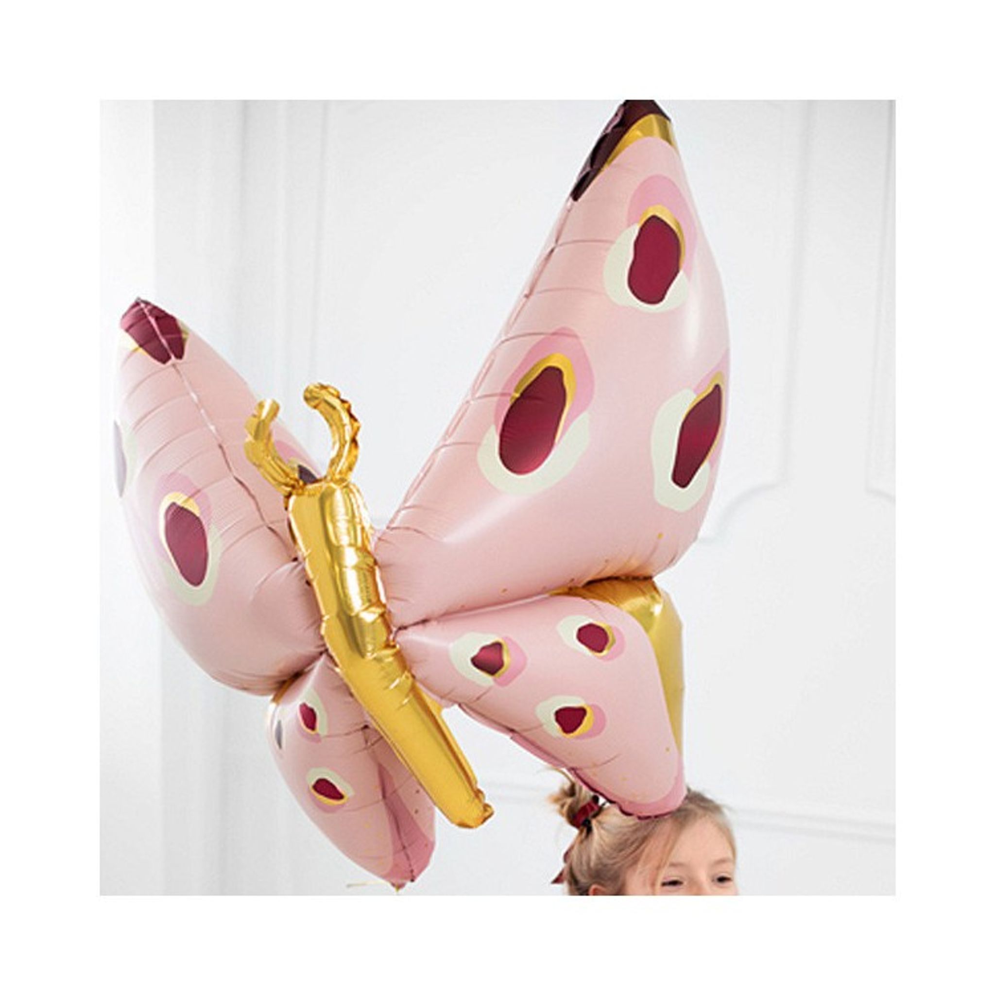 Stor färgglad folieballong i form av en fjäril. Perfekt att använda som dekoration på kalaset. Fyll med helium om du vill att den ska flyga och annars med vanlig luft. Storlek: 110 x 80 cm