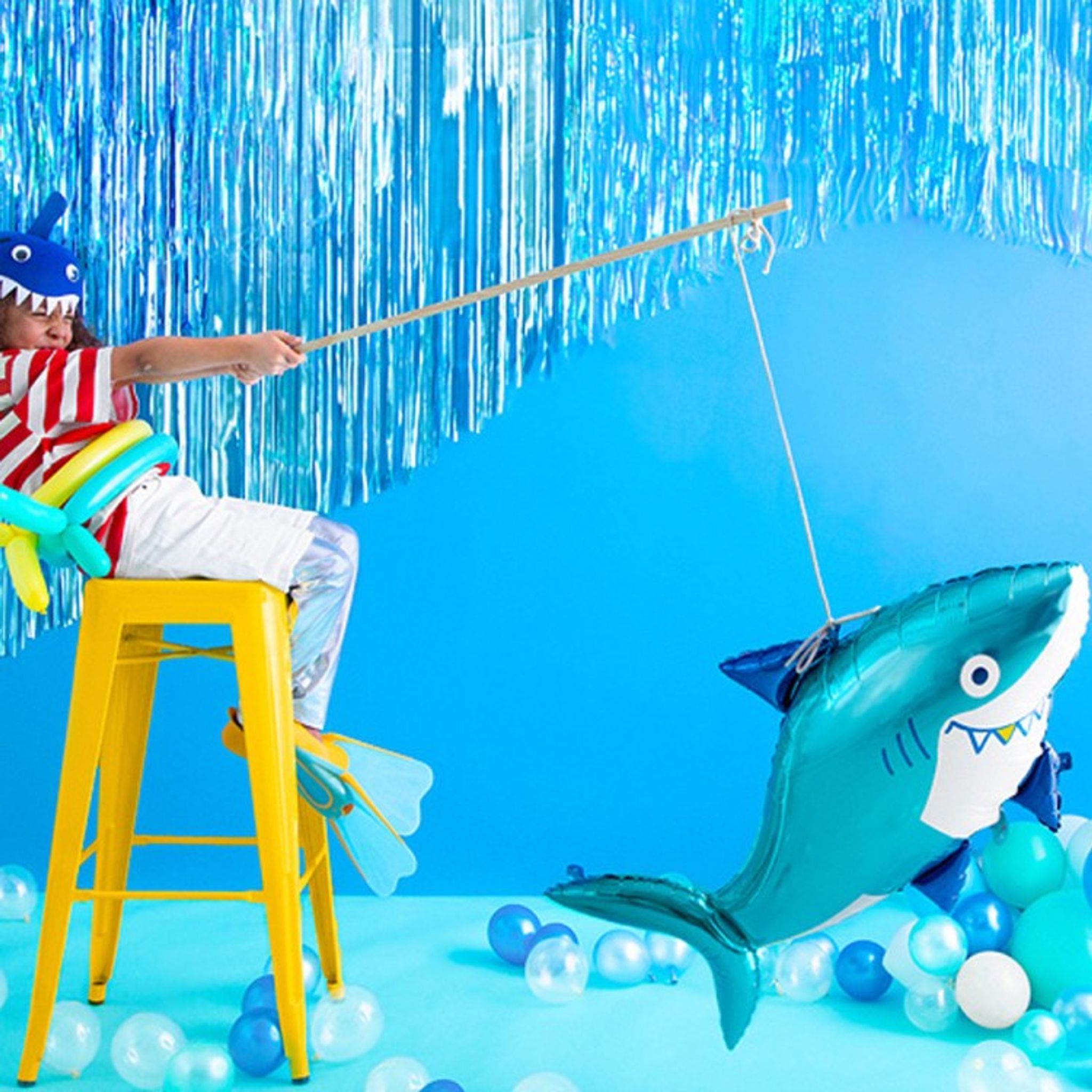 Vågar du dekorera med en haj till kalaset? Cool folieballong som blir extra fin om du fyller den med helium så den svävar fram igenom luften i kalasrummet. Storlek: 92 cm x 48 cm