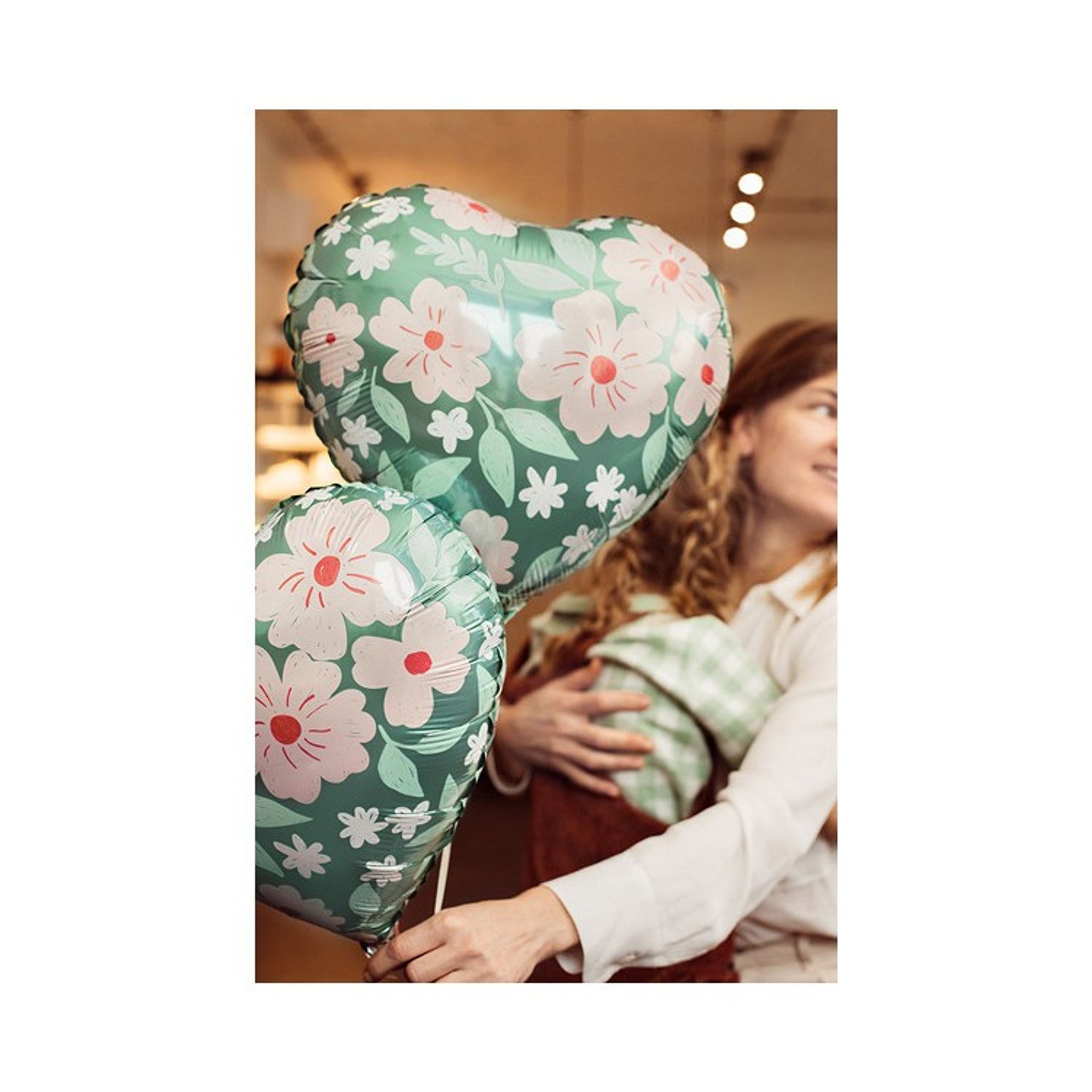 Anordna midsommarfest, dekorera inför alla hjärtans dag eller överraska mamma på morsdag med en vacker folieballong. Folieballongen är i form av ett hjärta, med grön färg i botten samt rosa blommor på.