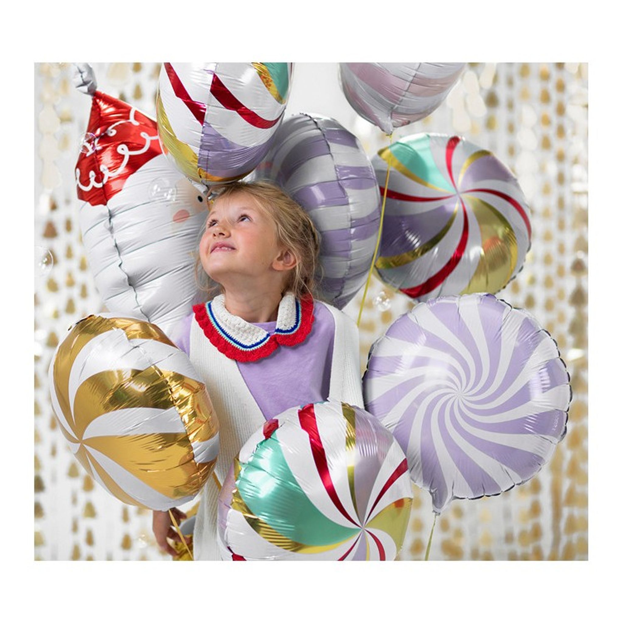 Sommarkalas eller barnkalas i pastellfärger? Den här härliga folieballongen blir pricken över i:et. Dekorera tillsammans med våra andra folieballonger i form av karameller, tillsammans med kalasdekorationer i lila eller skapa ett färgglatt kalas med blandade pastellfärger.