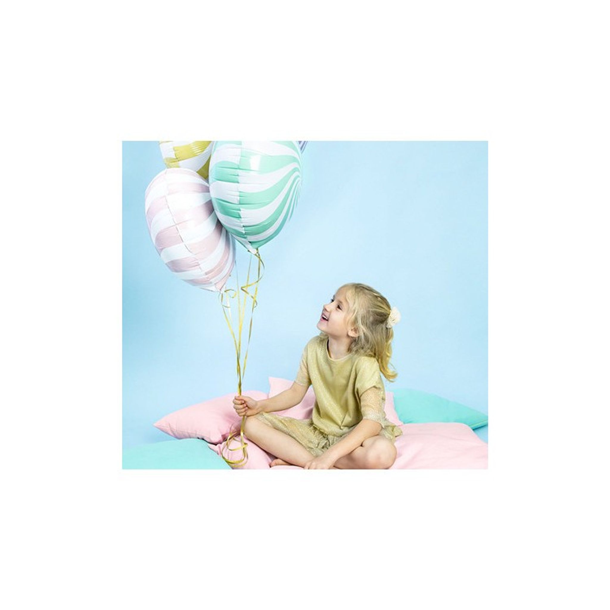 Dekorera barnkalaset som går i pastellfärger eller sommarkalaset med den här söta karamellen. Folieballongen har ett swirlmönster i vitt och ljusrosa, vilket gör att den liknar en riktig karamell. Otroligt söt kalasdekoration på barnkalaset!