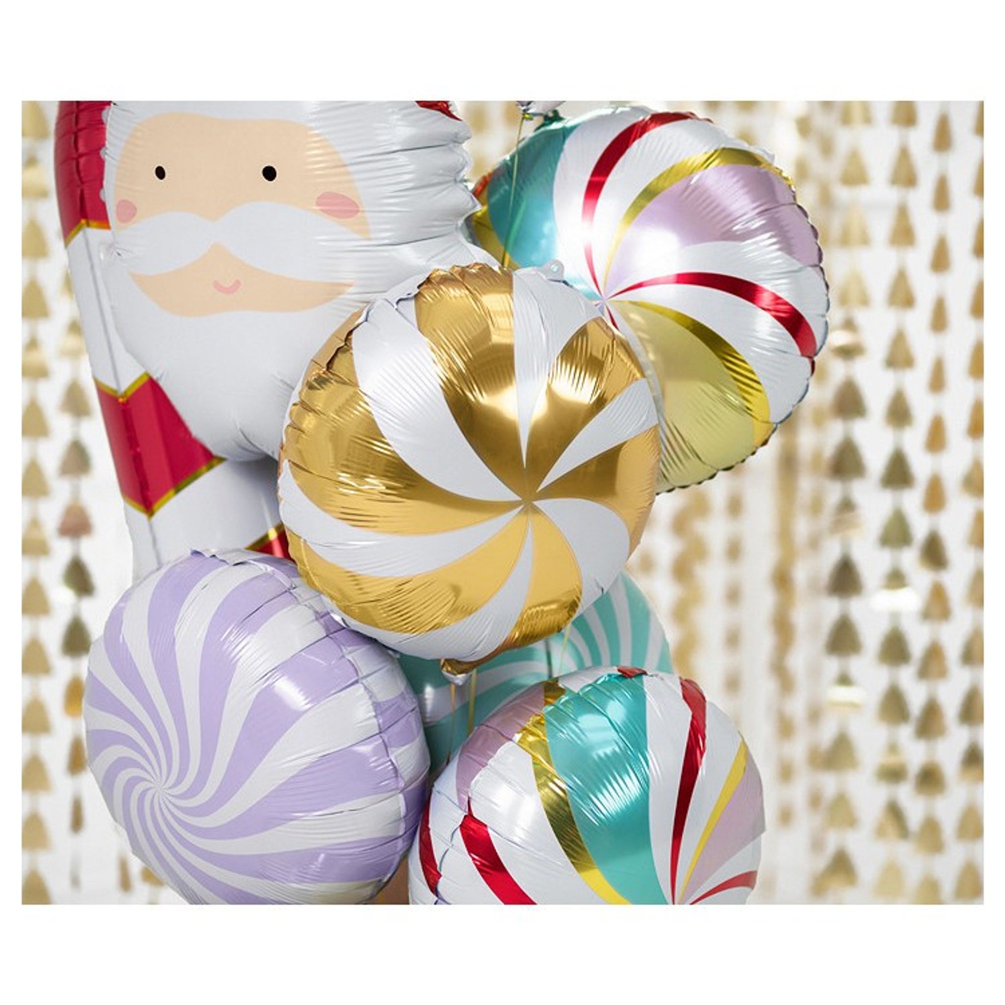 Rund folieballong som ser ut som en guld/vit randig karamell. Passar fint till alla festligheter som ensam eller i en hel bukett med ballonger. Kanske du ger bort den i present till den som fyller år? Fyll ballongen med helium om du vill att den ska flyga och annars går det lika bra med vanlig luft (använda då ballongpump eller t.ex ett sugrör för att blåsa upp denna).