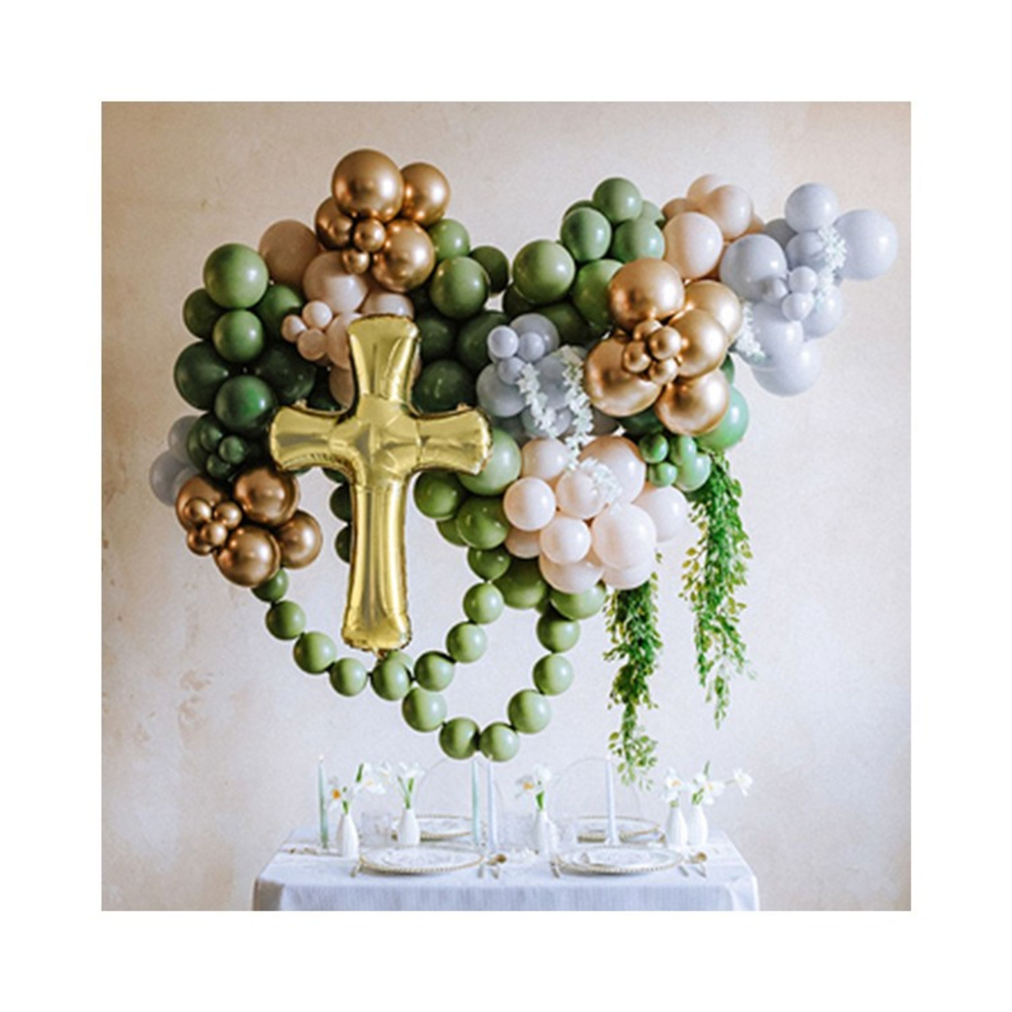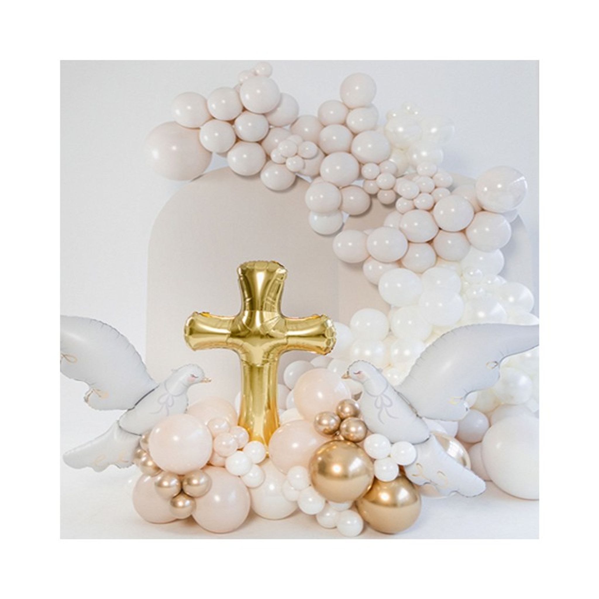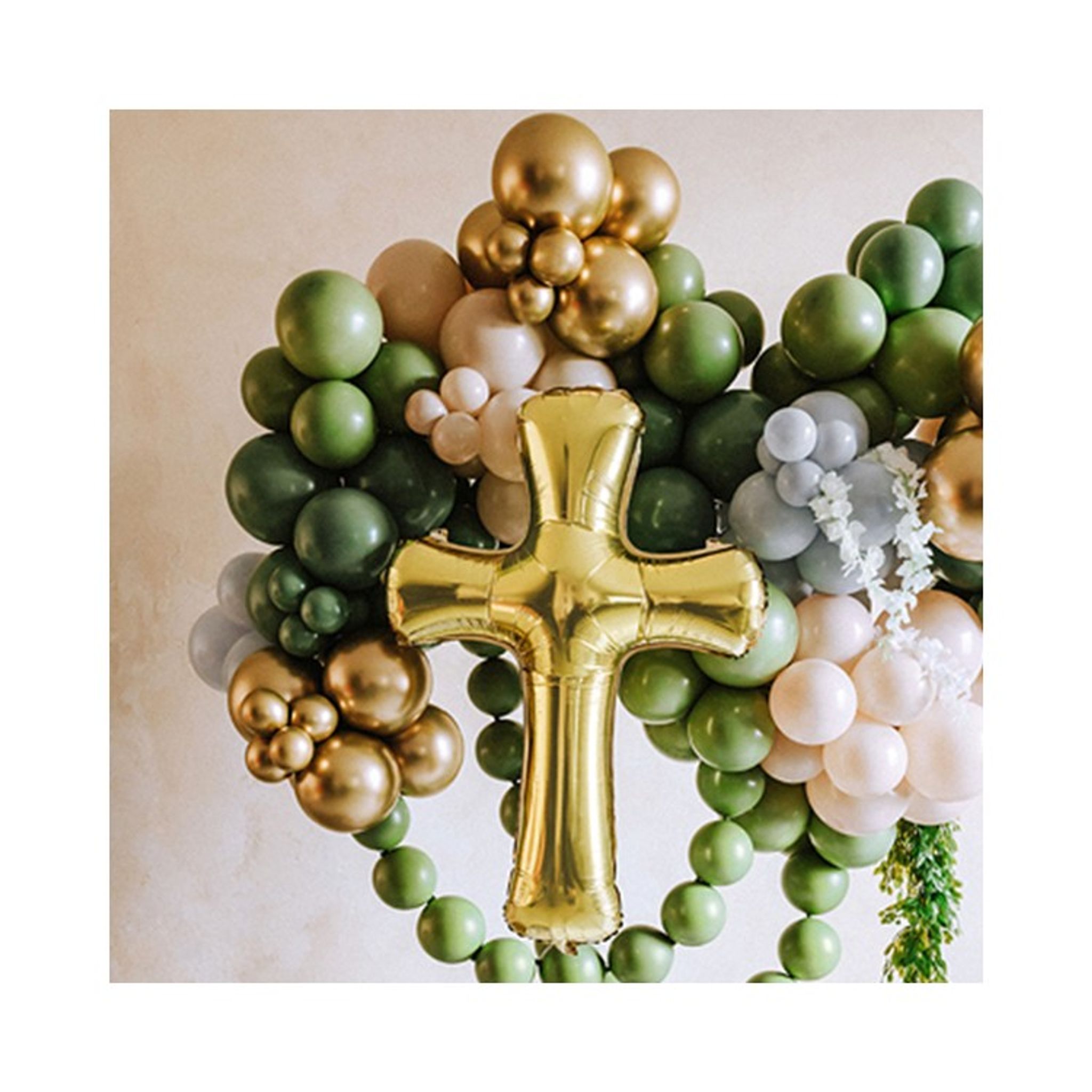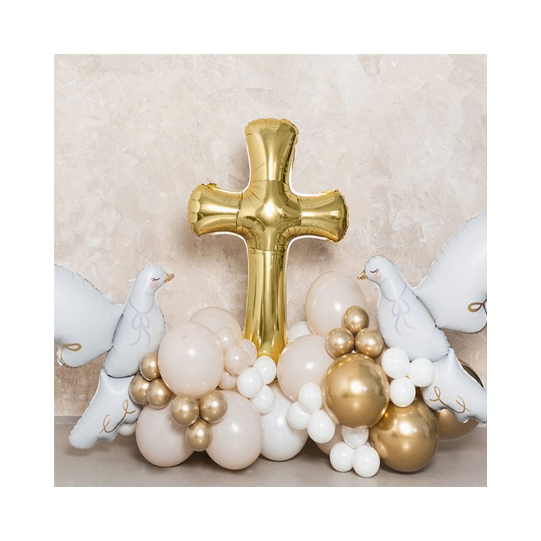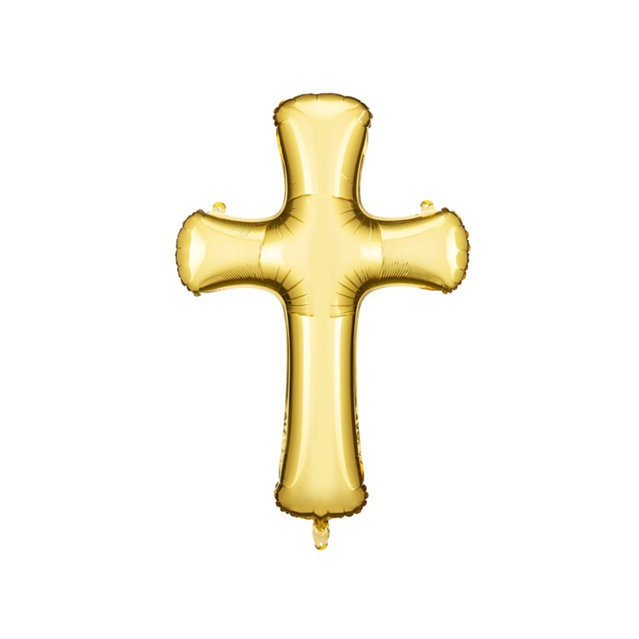 Folieballong med forma av ett kors i guld. Fint att dekorera tillsammans med fler olika ballonger till konfirmation, dop eller bröllop. Storlek: 91 x 63 cm med luft i Kan fyllas med luft eller helium.