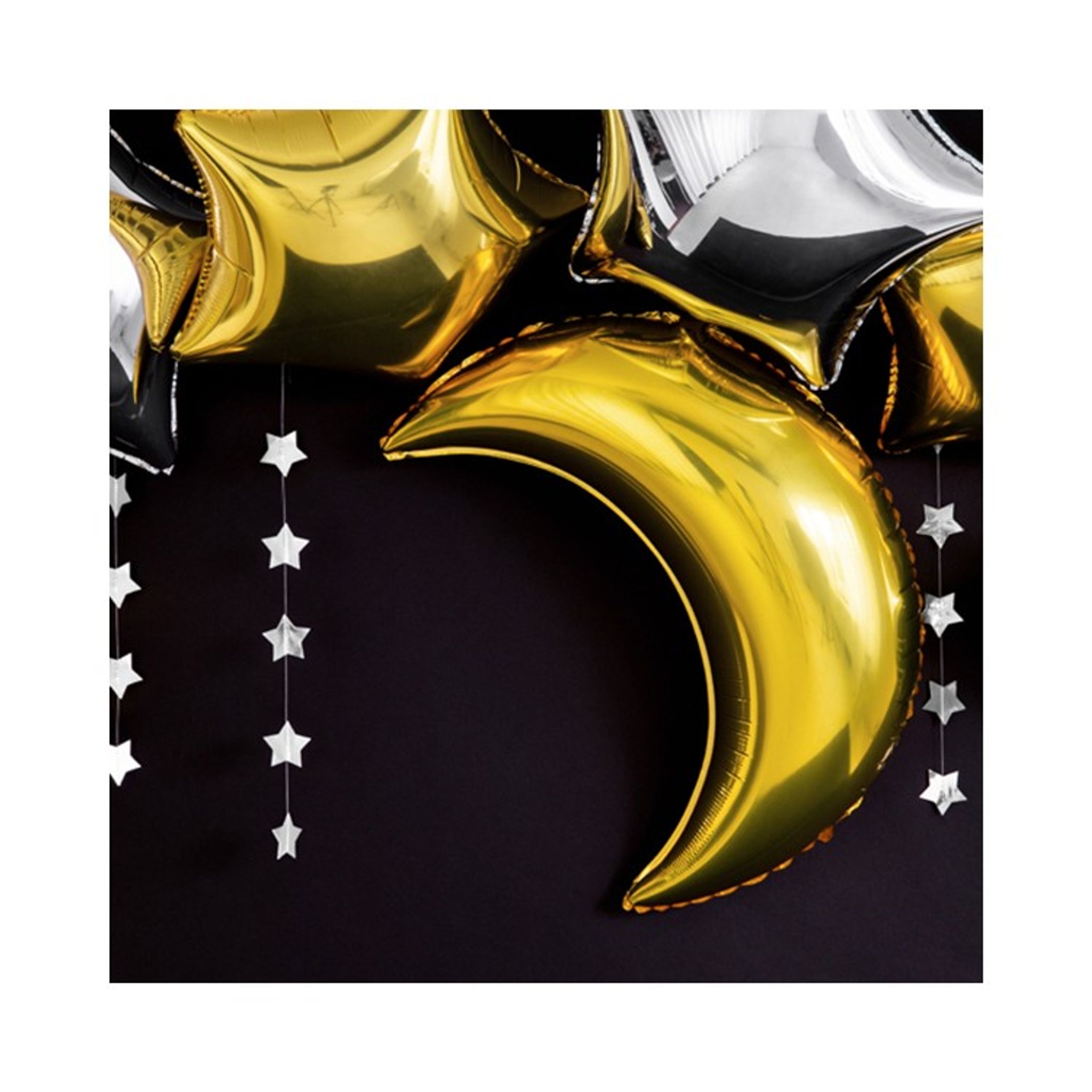 Folieballong med form av en måne i guld.