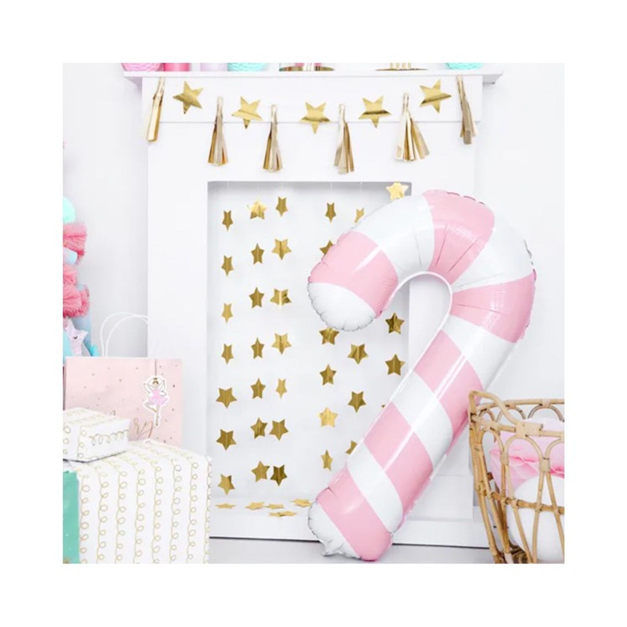 Folieballong Polkagriskäpp Rosa. Klassisk polkagriskäpp nu som folieballong! Härligt rosa och vit-randig!