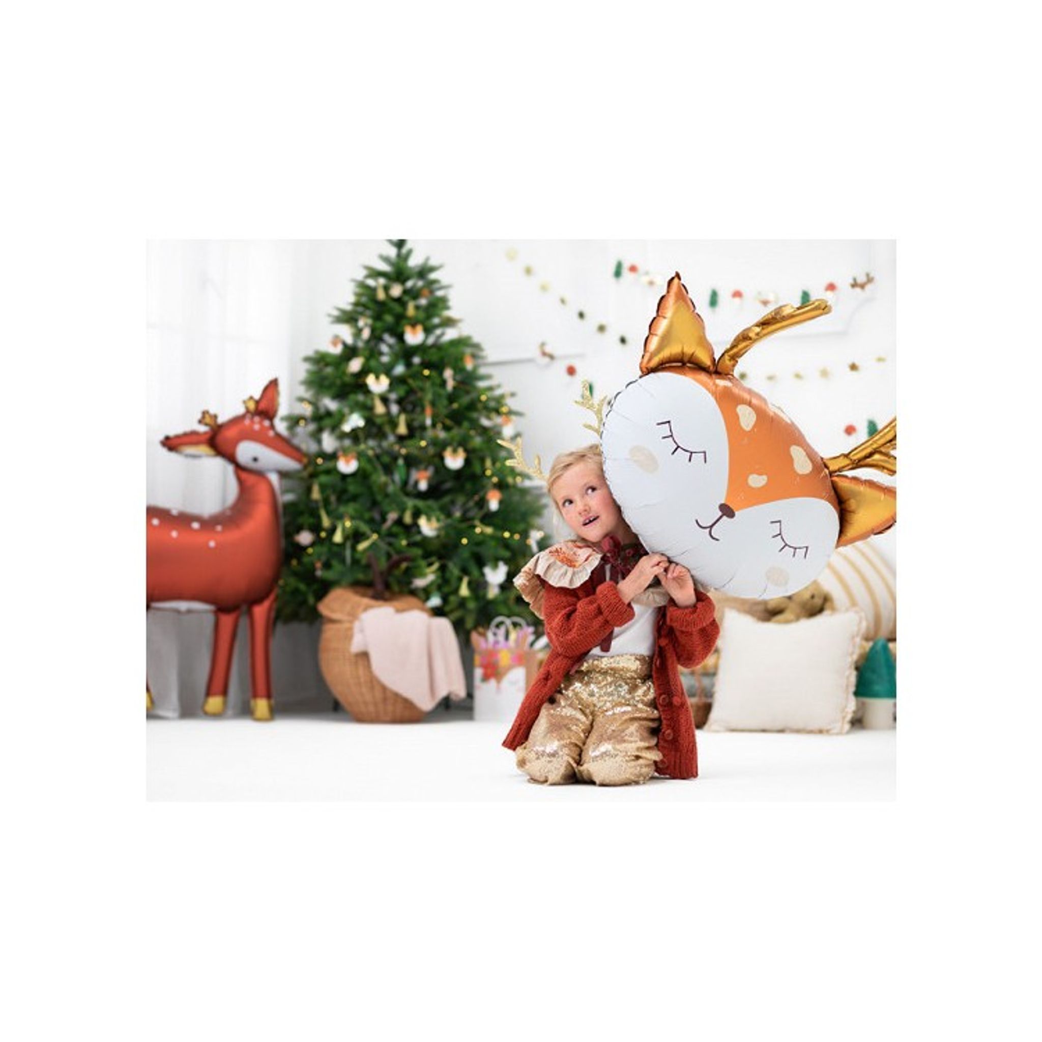 En supersöt folieballong i form av ett rådjurshuvudet. Denna ballong passar perfekt att använda som dekoration på alla tillfälle, från babyshowern och barnkalaset till julfesten!