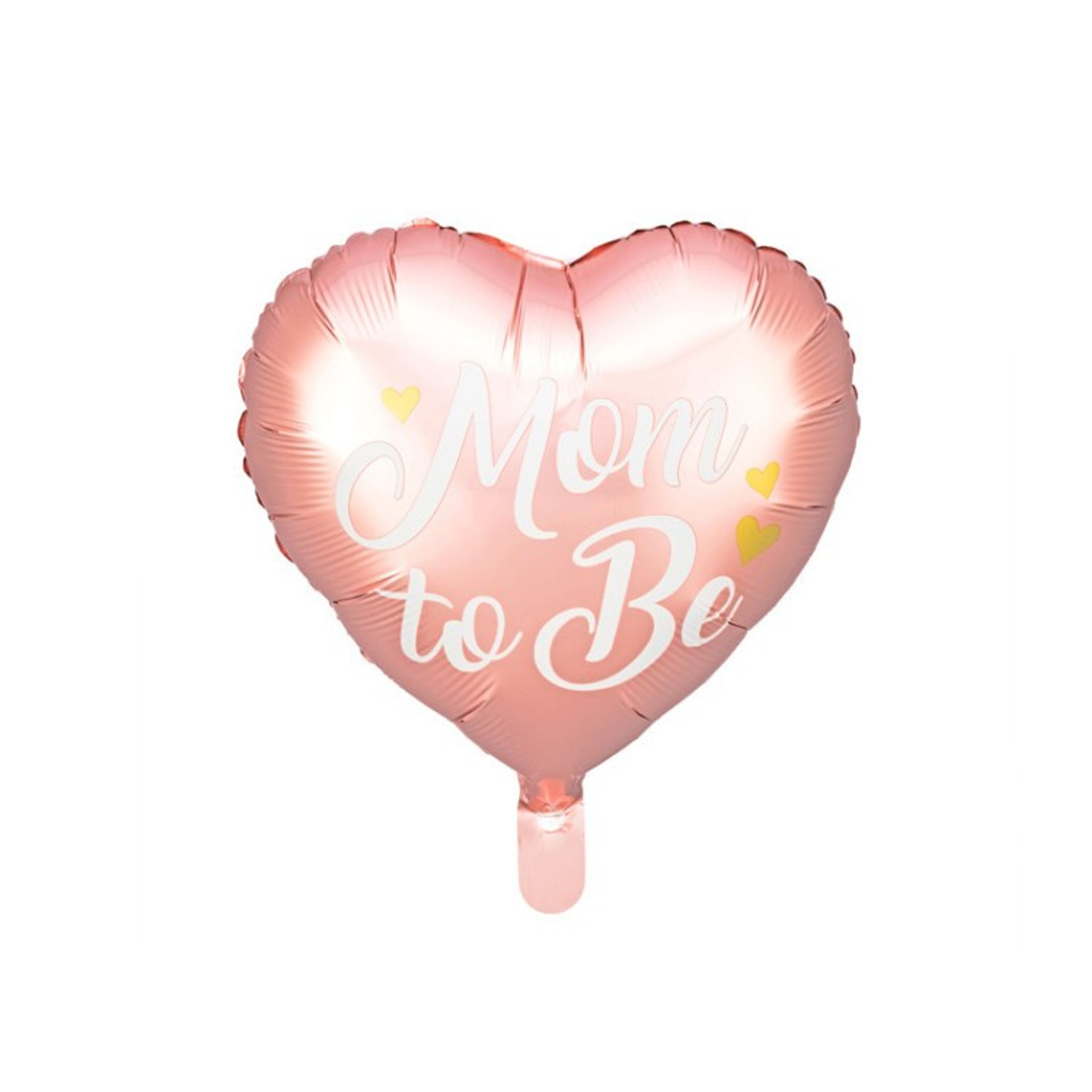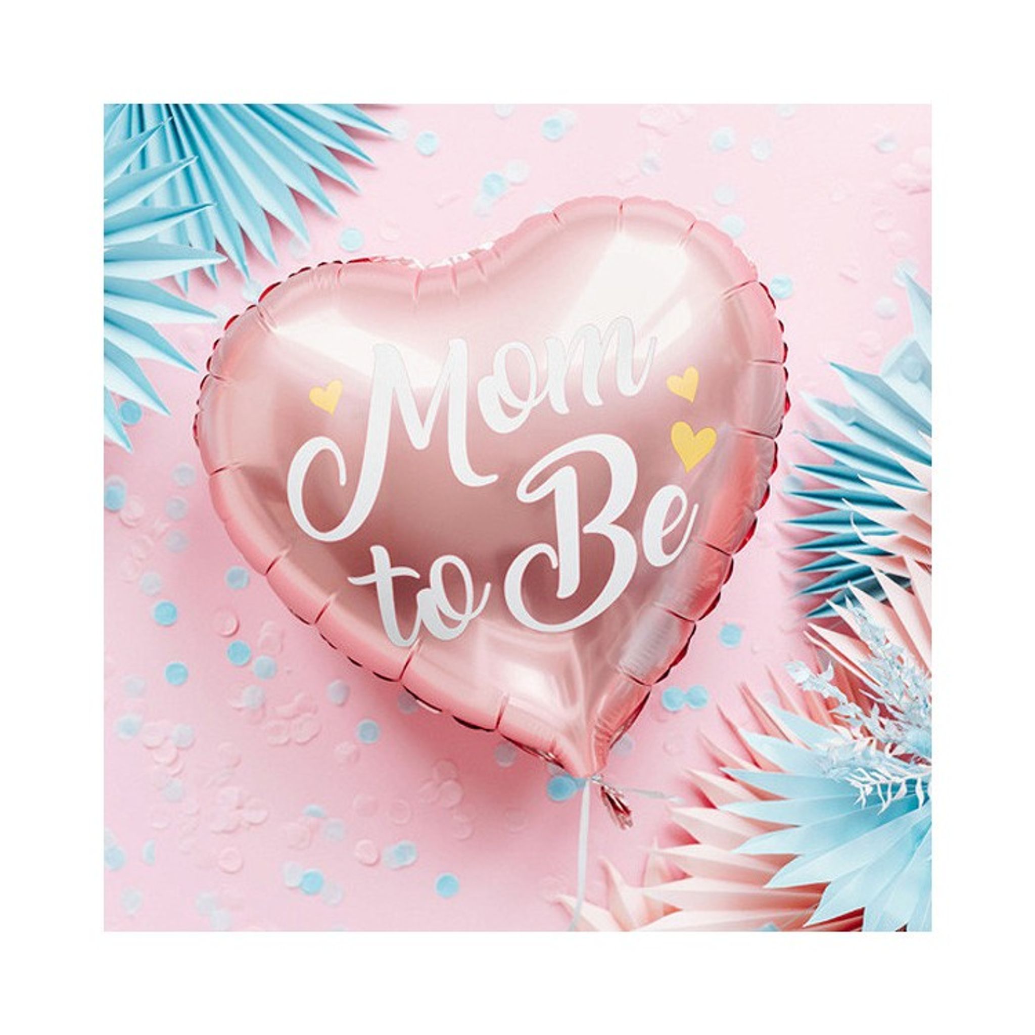 Hjärtformad folieballong i rosa med texten Mom to Be. Perfekt att använda som dekoration på babyshowern eller att ge som en liten gåva till den blivande mamman.
