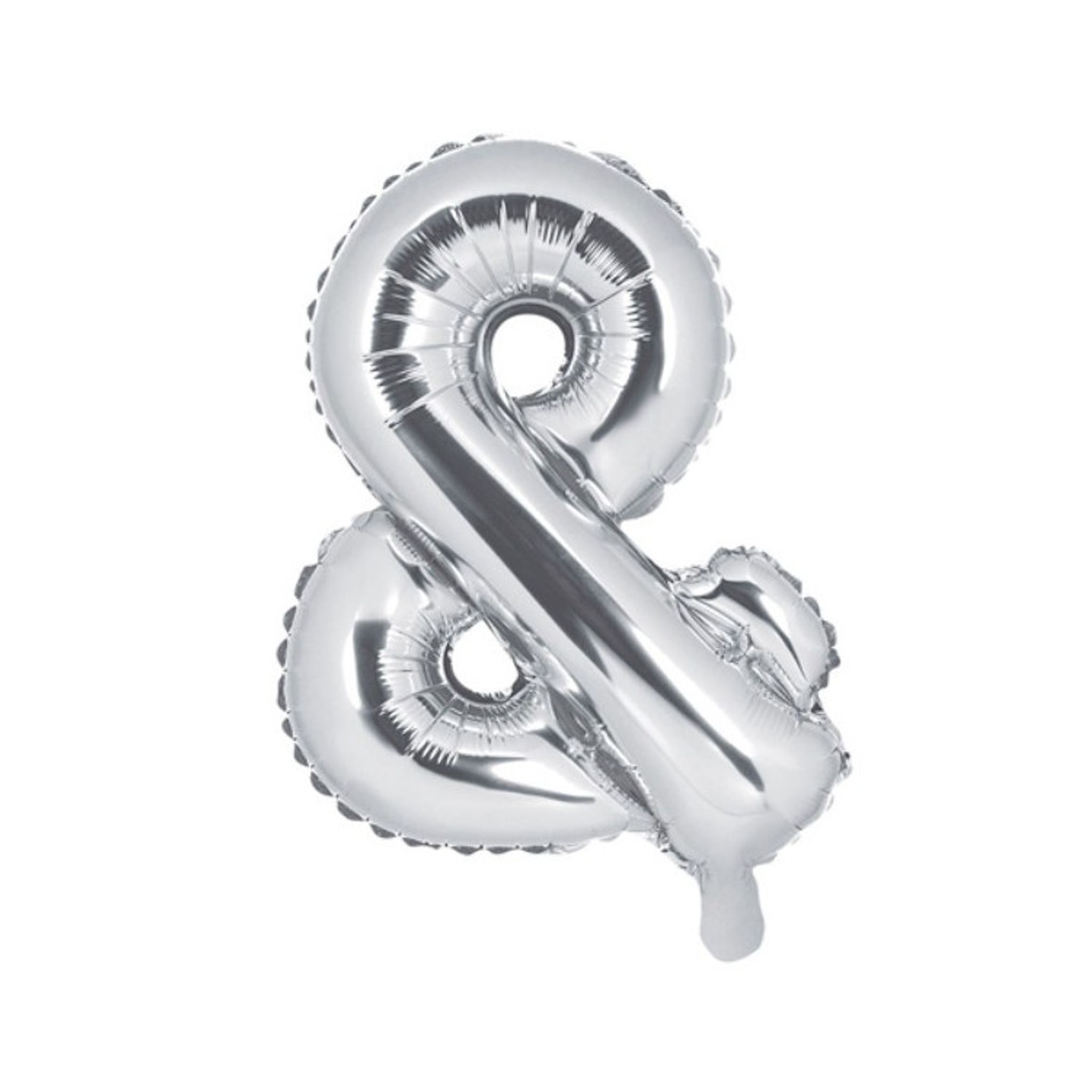 35 cm stor, siverfärgad folieballong i form av ett "&"-tecken som hjälper dig när du vill dekorera till festen med bokstavsballonger.