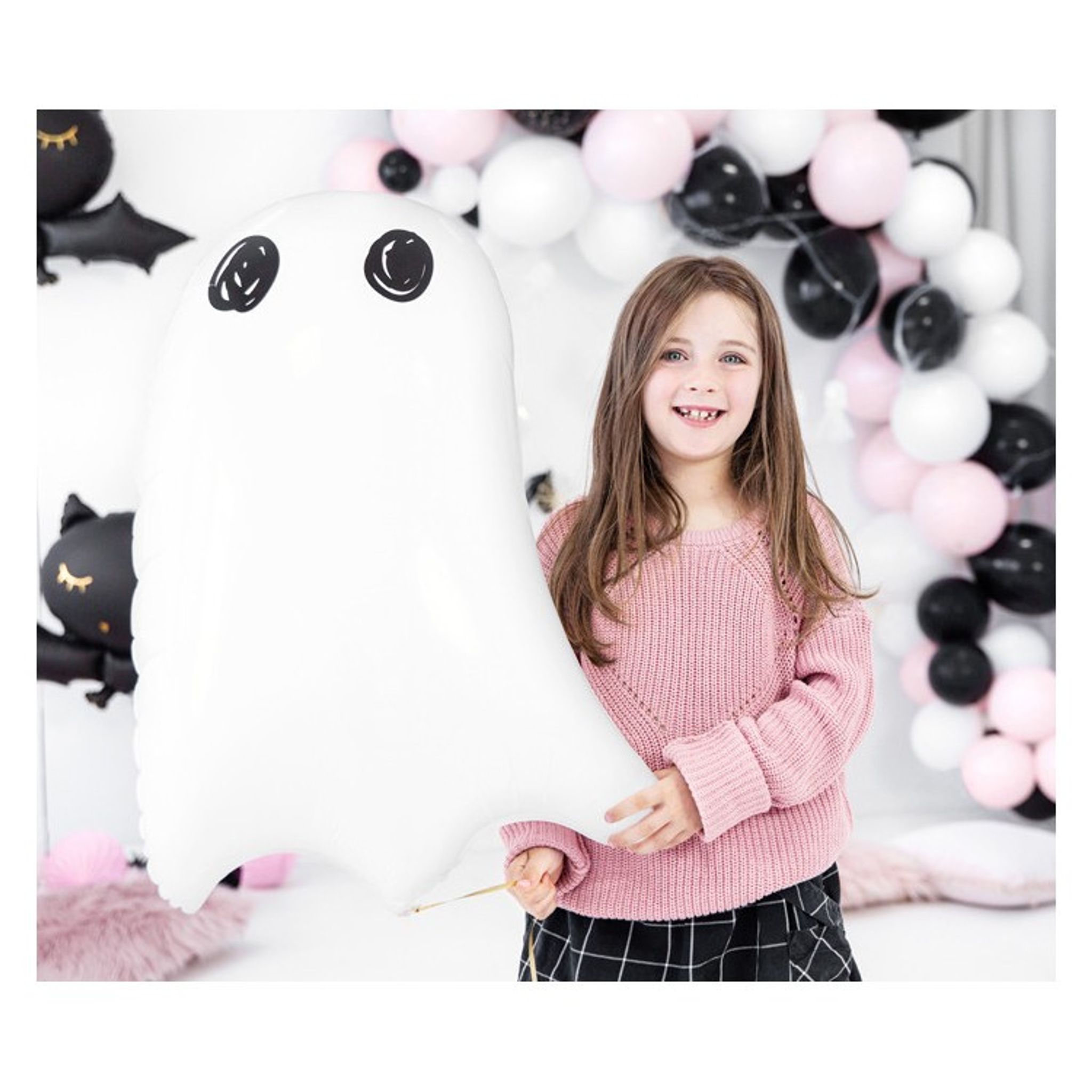 Stor och härligt folieballong i form av ett vitt spöke. Passar perfekt att blåsa upp och dekorera med på t.ex halloweenfesten.