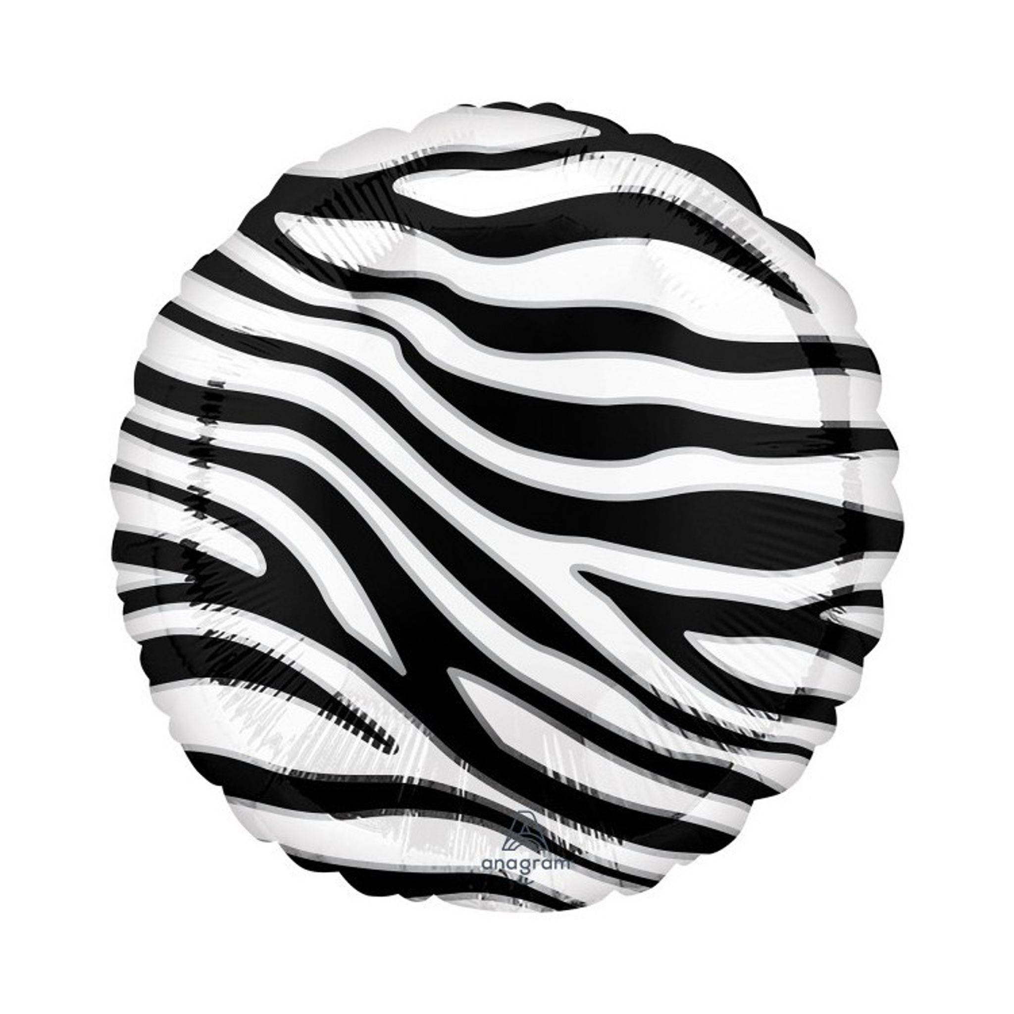 Rund folieballong med zebramönster.