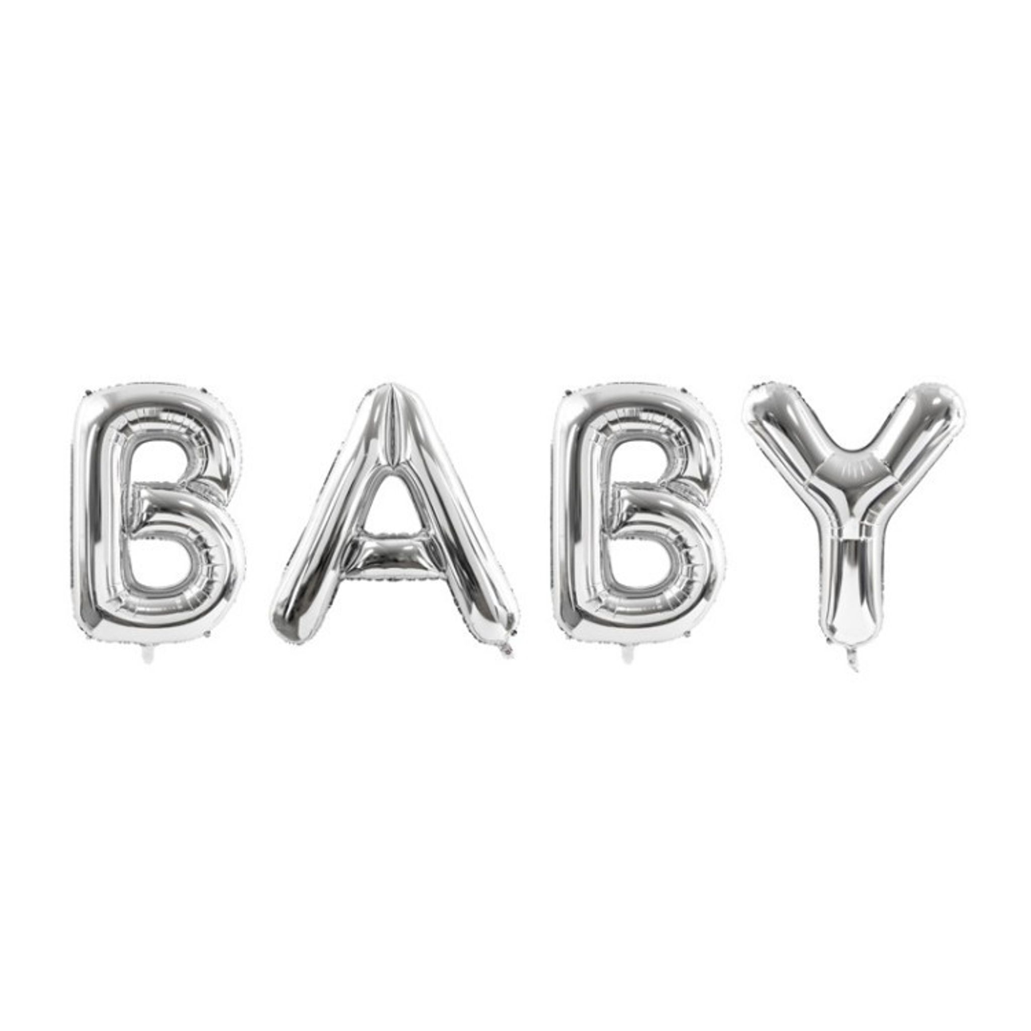Folieballonger i silver BABY. Perfekt att använda som dekoration på t.ex babyshowern.